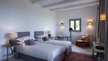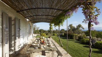 Wenn Sie das Anwesen betreten, werden Sie vom fabelhaften Trajan Dining Room empfangen, in dem bis zu 20 Gäste den professionellen Kochservice der Villa auf einmal erleben können, während das Essen direkt nebenan in der Küche im Erdgeschoss gekocht wird. Verbringen Sie gemütliche Abende am Kamin im Wohnzimmer im Herzen der Villa, bevor Sie durch die vier atemberaubenden Schlafzimmer im Erdgeschoss streifen, von denen zwei miteinander verbunden sind und eines über einen eigenen Eingang zum Hammam verfügt. Jedes Zimmer ist einzigartig und öffnet sich zu einem anderen Teil der Villa und bietet eigene Perspektiven auf die lokale Landschaft. Auf dem Weg nach oben bieten zwei weitere, miteinander verbundene, geräumige Schlafzimmer einen eigenen Panoramablick. Eine Bibliothek und eine zweite Küche und ein Essbereich vervollständigen die erste Etage. Auf der Dachterrasse können Sie ein Bad im Pool auf der Dachterrasse nehmen, bevor Sie an der warmen Sommerluft unter dem Sternenhimmel speisen. Für weitere Speisemöglichkeiten verfügen sowohl der Innenhof und auch die Gartenterrasse über eigene Esstische und es gibt einen zusätzlichen Grillplatz an der Außenküche am Pool.