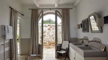 Draußen strotzt der Garten vor Leben. Der natürlich geschwungene, beheizbare Pool ist von Liegen umgeben, ideal für heiße Sommertage, an denen sich weniger nach mehr anfühlt, und die Villa verfügt über einen eigenen Spielhügel, um Ihren kleinen Entdecker zu unterhalten. Der Poolhaus beherbergt zwei miteinander verbundene Schlafzimmer, ein Zweibett- und ein Super-Kingsize-Schlafzimmer, beide mit malerischem Meerblick und eigenem Bad. Eine weitere King-Size-Suite befindet sich direkt über der Kapelle, für diejenigen, die ein privateres Zimmer suchen. Der Küstenstadt Monopoli ist nur 12 Minuten Autofahrt entfernt, reich an Geschichte und bietet großartige Möglichkeiten für Restaurants. Lokaler ist es nur fünf Minuten Autofahrt entfernt, Geschäfte und eine Pizzeria.