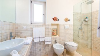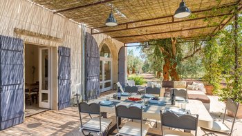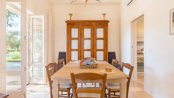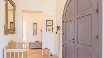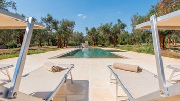 Diese wunderschöne, moderne Villa liegt inmitten von Olivenbäumen, Plumbago und anderen Sträuchern in Küstennähe, auf halbem Weg zwischen Otranto und Santa Maria di Leuca, nur 2,4 km von ausgezeichneten, preiswerten Restaurants und Geschäften im malerischen Dorf Spongano entfernt. Dessen weiße Wände sind wunderschön im modernen, eleganten italienischen Stil eingerichtet und bilden eine leere Kulisse für elegante Polstermöbel und ein paar antike Möbelstücke. Ins Innere befindet sich auf der linken Seite ein offenes Grundriss Wohnzimmer mit modernen weißen Sofas, das zum Essbereich führt, in dem alle Tisch- und Glaswaren untergebracht sind. Von hier aus öffnet sich die neue Küche mit schönen Fliesen zu einem Innenhof mit Waschbecken, Dusche und einem Hauswirtschaftsraum. Die drei Schlafzimmer sind über einen Korridor zugänglich, der rechts von der Eingangshalle zur Rückseite des Hauses führt. Ein Doppel- und ein Zweibettschlafzimmer teilen sich ein neues Duschbad mit zwei Waschbecken. Deren Hauptschlafzimmer am anderen Ende verfügt über ein besonders attraktives Himmelbett und öffnet sich zu seiner eigenen schattigen Terrasse. Deren Haus bietet ebenso viel Wert auf das Leben im Freien und verfügt über eine große schattige Terrasse zum Essen im Freien, mit eingebauten gepolsterten Sitzgelegenheiten und weiteren bequemen Sitzgelegenheiten neben dem großen neuen Swimmingpool. Deren charmante Dorf Spongano mit einem ausgezeichneten Restaurant, Trattoria Picalo, ist ca. 30 Minuten zu Fuß von der Villa durch die Landschaft für energiegeladene Spaziergänger. Dies ist eine sehr zentrale Lage für diejenigen, die wunderbare preiswerte Restaurants, eine atemberaubende Küste, Strände, Strandclubs und malerische und historische Städte wie Castro, Otranto, Gallipoli in dieser ruhigen und unberührten Ecke Süditaliens genießen möchten.