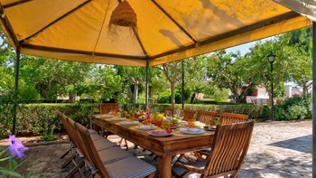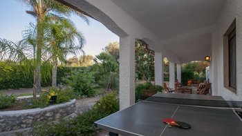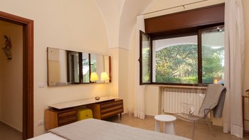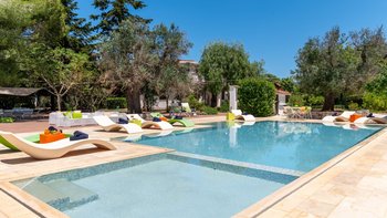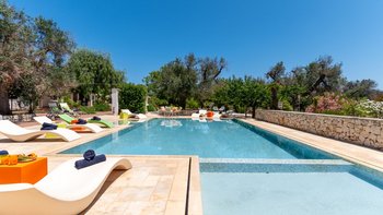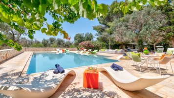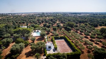 Versteckt im Herzen eines alten Olivenhains und einer bewirtschafteten Farm von vier Hektar, ist diese große Villa eine gute Wahl für ein informelles Familientreffen. Mit sechs Schlafzimmern und mehreren Zustellbetten bietet die Villa Platz für bis zu siebzehn Erwachsene und Jugendliche. Im Erdgeschoss gibt es ein Ess- und Wohnzimmer auf Split Ebene, eine sehr gut ausgestattete Küche und zwei geräumige Doppelschlafzimmer, die sich ein Bad teilen. Zwei weitere Schlafzimmer und das Arbeitszimmer, die sich ein Duschbad teilen, liegen von einem angrenzenden Flur aus. Die Unterkunft im Erdgeschoss wird ergänzt durch eine fröhlich eingerichtete Suite im ersten Stock, die über eine Außentreppe erreichbar ist, eine neu renovierte Küche mit Zugang zu einer großen Terrasse, ein weiteres großes Schlafzimmer mit Doppelbett und ein Kinder- und Esszimmer, das sich ein Duschbad teilt. Des Erdgeschoss öffnet sich zu einer schattigen Terrasse mit reichlich Sitzgelegenheit und angrenzendem Esspavillon. Ein zweiter Essbereich im Freien befindet sich im Schatten von Bäumen am Pool, serviert von einem Grill und einem Pizza- und -ofen; und Obst und Gemüse, die auf dem Grundstück angebaut und angebaut werden, bieten die eigenen Zutaten für das Mittagessen. Unterhaltungsmöglichkeiten für jede Altersgruppe sind Tischtennis und Tischfußball, ein großzügiger Pool und Planschbecken, ein beleuchteter Tennisplatz (mit Basketballnetz), Go-Karts und Spielplatz für Kinder, Liegewiese mit Fußballtor und eine Auswahl an Fahrrädern. Denen Eigentümer betreiben auf ihrem Grundstück regenerative Landwirtschaft und ihr hochwertiges Olivenöl und eine Auswahl an Weinen können gekauft werden. Und mit zwei Stränden im Umkreis von 15 km liegt The Olive Grove nur 1,5 km von ausgezeichneten, preiswerten Restaurants und Annehmlichkeiten im malerischen San Vito dei Normanni entfernt. Nur 30 Minuten vom Flughafen Brindisi entfernt, ist dies eine ausgezeichnete Wahl für einen entspannten Familienurlaub mit viel Unterhaltung für alle Altersgruppen.