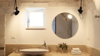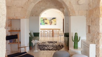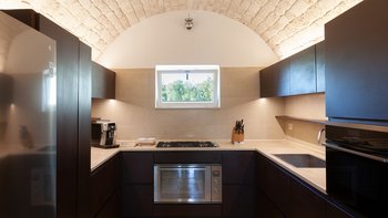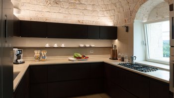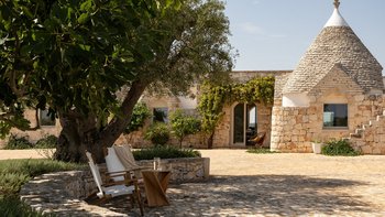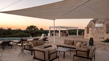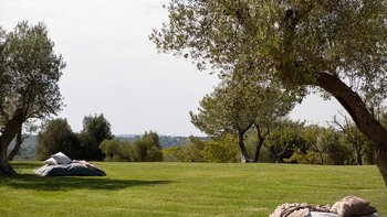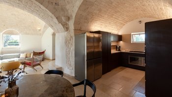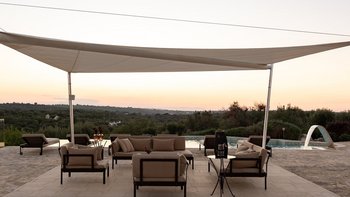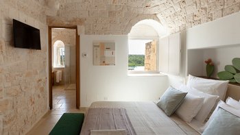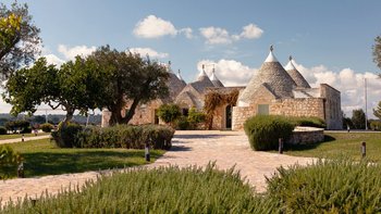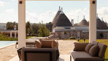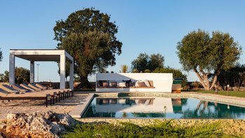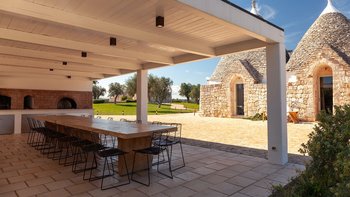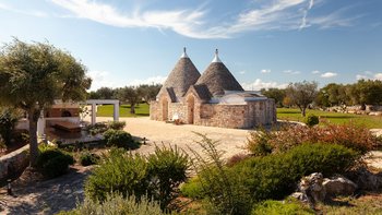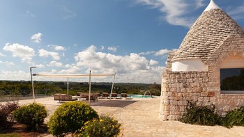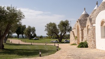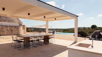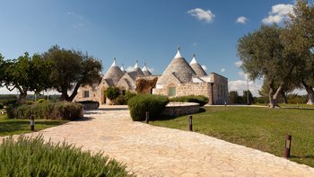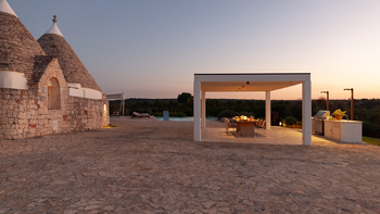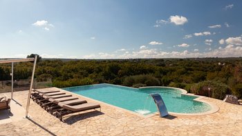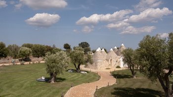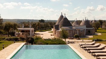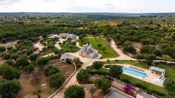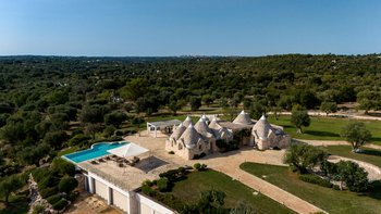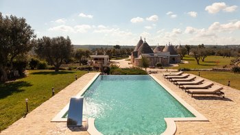Die Villa liegt auf einem sanften Hügel inmitten von Olivenhainen und bietet einen weiten Blick auf die umliegende Landschaft. Jeder Trullo verfügt über einen eigenen Salzwasserpool, einen mit Infinity-Rand und Hydromassagebereich, neben Terrassen, schattigen Essbereichen und professionellen Grills für entspanntes Leben im Freien.