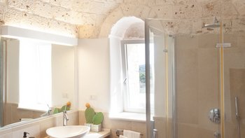 Das Trulli Uno verfügt über einen Essbereich für 12 Personen, eine voll ausgestattete Küche mit Blick auf den Pool, elegante Lounges und drei Schlafzimmer mit eigenem Bad. Des Trulli Due bietet einen Essbereich für 10 Personen, zwei Wohnbereiche, darunter eines mit Kamin und drei Schlafzimmer mit eigenem Bad, darunter eine Master-Suite. Aller Schlafzimmer verfügen über Klimaanlage, WLAN und moderne Annehmlichkeiten.