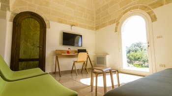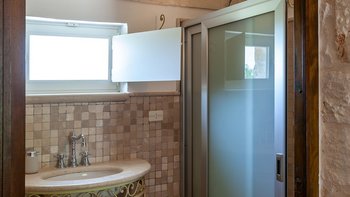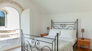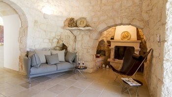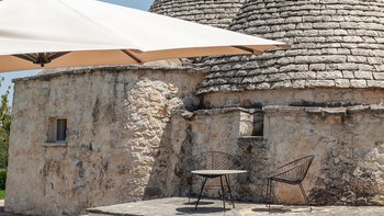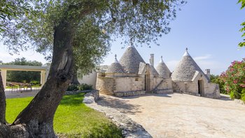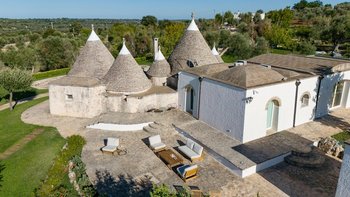 Mit einer Ansammlung von fünf Trulli-Kegeln, die das Haupthaus bilden, und einem modernen Nebengebäude mit vier Schlafzimmern direkt unterhalb der Poolterrasse ist diese entzückende Villa perfekt für Familientreffen. Auf dem ländlichen Grundstück eines privaten Anwesens, wo die Gäste auf gewundenen Wegen durch Felder zu Trulli-Ruinen folgen können, genießt das Haus eine außergewöhnliche Ruhe, umgeben von schönen abfallenden Rasenflächen mit Feigenbäumen und Blumenbänken, großen Terrassen mit schöner Aussicht und einem 16-Meter-Pool mit Hydromassagedüsen. Die Steinböden, Wände und Bögen des Trulli beherbergen zwei Schlafzimmer, zwei Sitzbereiche, eine voll ausgestattete, aber sehr ländliche Küche und ein Esszimmer, das sich zu einer überdachten Veranda öffnet, wo ein Grill und ein Pizzaofen die Mahlzeiten im Freien problemlos erledigen. Aller sechs Schlafzimmer haben einen externen Zugang und ein eigenes Bad mit Dusche, und es gibt eine Klimaanlage in der gesamten Villa, und Plasma-Fernseher sowohl im Trullo und auch im Nebengebäude. Trulli Ferragosto ist eine Mischung aus Charme der alten Welt und modernem Komfort und liegt in der Nähe von Stränden und mehreren hübschen Städten und 7 km von Geschäften und Restaurants in Ceglie Messapica entfernt.