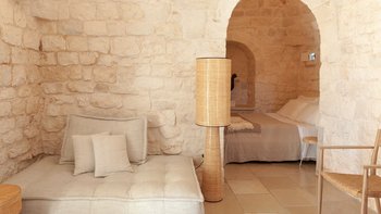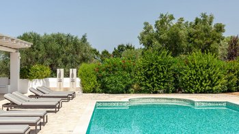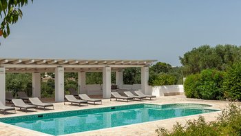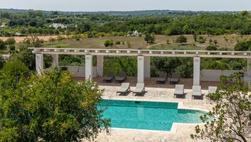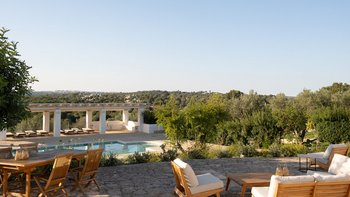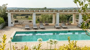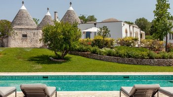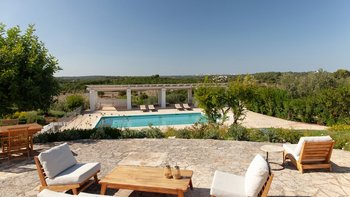 Mit Blick auf die Felder und Kirschgärten eines privaten Anwesens in den Hügeln des Valle d’Itria ist diese Familienvilla in Apulien ein komfortabler, charaktervoller, ländlicher Rückzugsort mit hohen Standards und einem riesigen Pool.