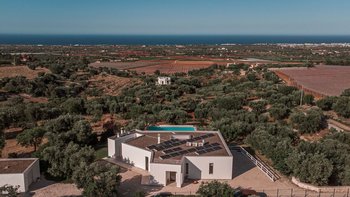 Villa Bianca ist ein wunderschönes Anwesen auf einem Hügel mit Blick auf die Küstenstadt Polignano a Mare, eingebettet zwischen Mandelhainen und alten Olivenbäumen. Dieses schöne Anwesen ist architektonisch einzigartig, unglaublich modern und doch perfekt in die zeitlose Landschaft Apuliens integriert. Im Inneren finden Sie ein stilvolles und helles Wohnzimmer mit Kamin und Panoramafenstern sowie einen schönen Essbereich und eine große moderne Küche. Drei geräumige Doppelschlafzimmer, darunter ein Hauptschlafzimmer mit Meerblick, befinden sich ebenfalls hier.