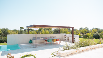 Die Villa Lucetta liegt in den Hügeln in der Nähe von Ostuni und ist ein stilvoller, moderner Rückzugsort umgeben von Olivenhainen. Dieser einstöckige Villa vereint Privatsphäre und Gemeinschaftsraum und ist somit ideal für Familien oder Gruppen.