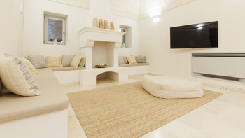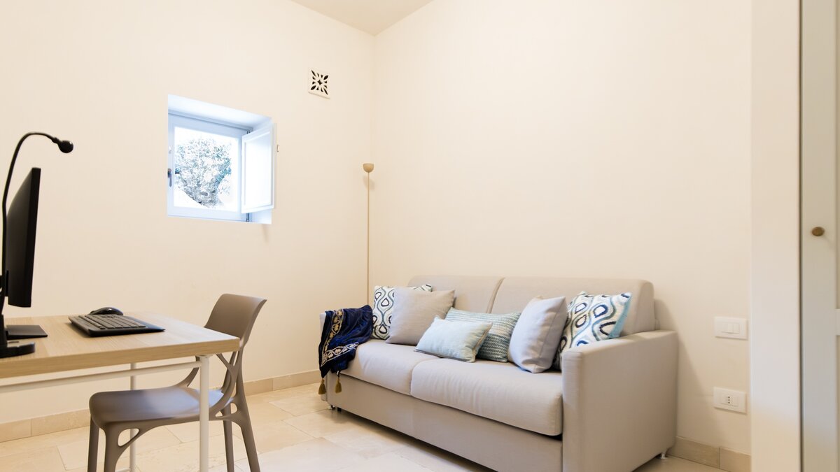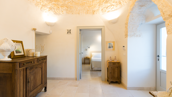 Die Innenräume sind sorgfältig über verschiedene Flügel verteilt. Der Trullo Wing verfügt über zwei Schlafzimmer mit eigenem Bad, die traditionelle Steindetails mit modernem Komfort verbinden. Der Garden Wing umfasst Doppel- und Zweibettzimmer mit Zugang zum Garten, ein eigenes Bad und ein flexibles Studio mit einem Schlafsofa, das den Gästen vielseitige Unterkünfte bietet.