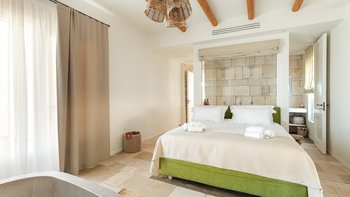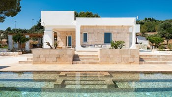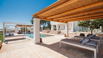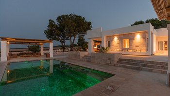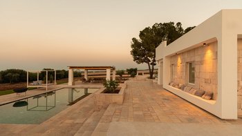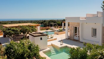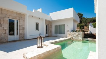 Offering sea views from its various outdoor living spaces, Villa Montemare is a spacious and contemporary villa in Puglia. Set in five acres of land, the villa boasts stylish, modern décor and contemporary architecture. Inside, enjoy an airy kitchen, living and dining space, designed with stylish, minimalist furniture and trendy neutral tones. Each of the villa's three bedrooms are beautifully designed with a super-king size bed, an en suite and access to the terraces. The master bedroom also boasts an in-room bath.