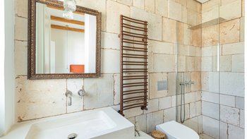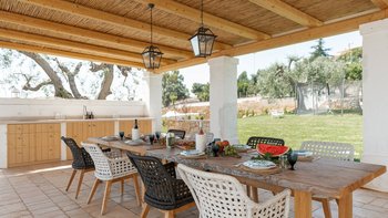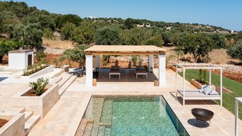 Outside, guests can make the most of the Puglian sunshine poolside with two pergolas. or at the outdoor kitchen and covered dining area. There is also a rooftop dining and 'chlllout' terrace. Here, guests will discover a seating and dining area and small space to prepare food, which includes a sink and small fridge. The villa provides an indulgent two pools, one of which is heated. Though Villa Montemare is very private, it is located within a ten to fifteen minute drive from Monopoli, with its charmng and excellent restaurants and great shopping. Monopoli has a very pretty historic centre and we recommend thatt you arrive in the early morning or late afternoon and walk from one of the old churches to the old ;port to see where fishermen sit mending nets and gossiping in local dialect. We also recommend that you stroll past the medieval castle and along the city walls, stopping for a spritz on the roof of the Don Ferrante hotel before arriving at Lido Bianco, one of our favourtite fish restaurants for lunch or dinner. Polignano a Mare is one of the most picturesque sea side towns in Puglia and there are many boutiques with artisan items and restaurants.
