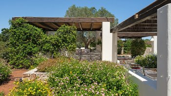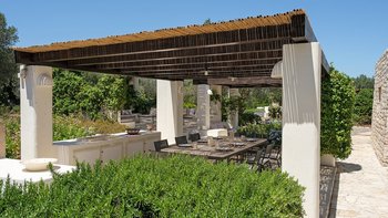 Die Villa liegt bequem inmitten von fünf Hektar Olivenhainen und ist von traditionellen Steinmauern umgeben. Hochgezogene Blumenbeete beherbergen einen kleinen Zitronenbaum, Diascia, Plumbago und Schlepppflanzen. Der Außenküche und die Sitzbereiche umfassen einen großen Esstisch und einen Bereich für die Zubereitung von Speisen mit gepolsterten Sitzen, die den perfekten Platz bieten, um den Sonnenuntergang mit einem Drink in der Hand zu beobachten. Eine Bar und ein Lebensmittelgeschäft sind nur 2,5 km zu Fuß oder mit dem Auto entfernt, während eine gute Auswahl an Supermärkten, Geschäften, Restaurants und Annehmlichkeiten auch in 7 km Entfernung in Cisternino oder 9 km entfernt in Ostuni zu finden sind. Zu den lokalen Sehenswürdigkeiten gehören Ceglie Messapica, eine bezaubernde Stadt im Herzen des Itria-Tals, und die faszinierende Martina Franca. Der Bahnhof Ostuni ist nur 11 km entfernt, während sich die Flughäfen Brindisi und Bari in unmittelbarer Nähe der Villa befinden.
