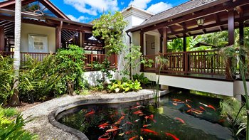 Eine spektakuläre Villa auf dem Sandy Lane Estate in der Nähe von Holetown inmitten tropischer Landschaft. Alila verfügt über einen luxuriösen Holzsteg über einen orientalischen Koi-Teich, der in die Villa und ihre atemberaubend angelegten Gärten führt. Dessen attraktive und farbenfrohe Wohn-/Esszimmer öffnet sich zum Gartenhof und dem weitläufigen Swimmingpool, von wo aus ein frischer Essbereich im Freien unter einer gefliesten Pergola erreicht werden kann. Neben dem Wohnbereich gibt es einen Fernsehraum, der ideal zum Entspannen ist, und eine große, hochmoderne Küche, in der der Küchenchef sechs Tage die Woche Mahlzeiten zubereitet, alle drei bei Bedarf, was zusätzlichen Komfort für ein wirklich entspannendes Erlebnis bietet. Diese moderne Villa ist in einer Mischung aus den besten Designelementen des barbadischen und balinesischen Stils eingerichtet, mit Farbtupfern und der Verwendung von exquisiten Harthölzern im gesamten Gebäude. Es gibt drei Schlafzimmer mit eigenem Bad mit Dusche im Erdgeschoss, zwei mit Kingsize-Betten und eines mit einem Queensize-Bett. Deren erste Etage ist komplett für die wirklich herrliche Master-Kingsize-Schlafzimmer-Suite, mit einem privaten Balkon, der Eleganz mit atemberaubender Aussicht ausstrahlt, und einer überdachten Außenbadewanne. Alila hat auch Zugang zu den Strandeinrichtungen der Sandy Lane Owners Beach Anlage, die nur eine kurze Autofahrt entfernt ist.