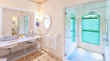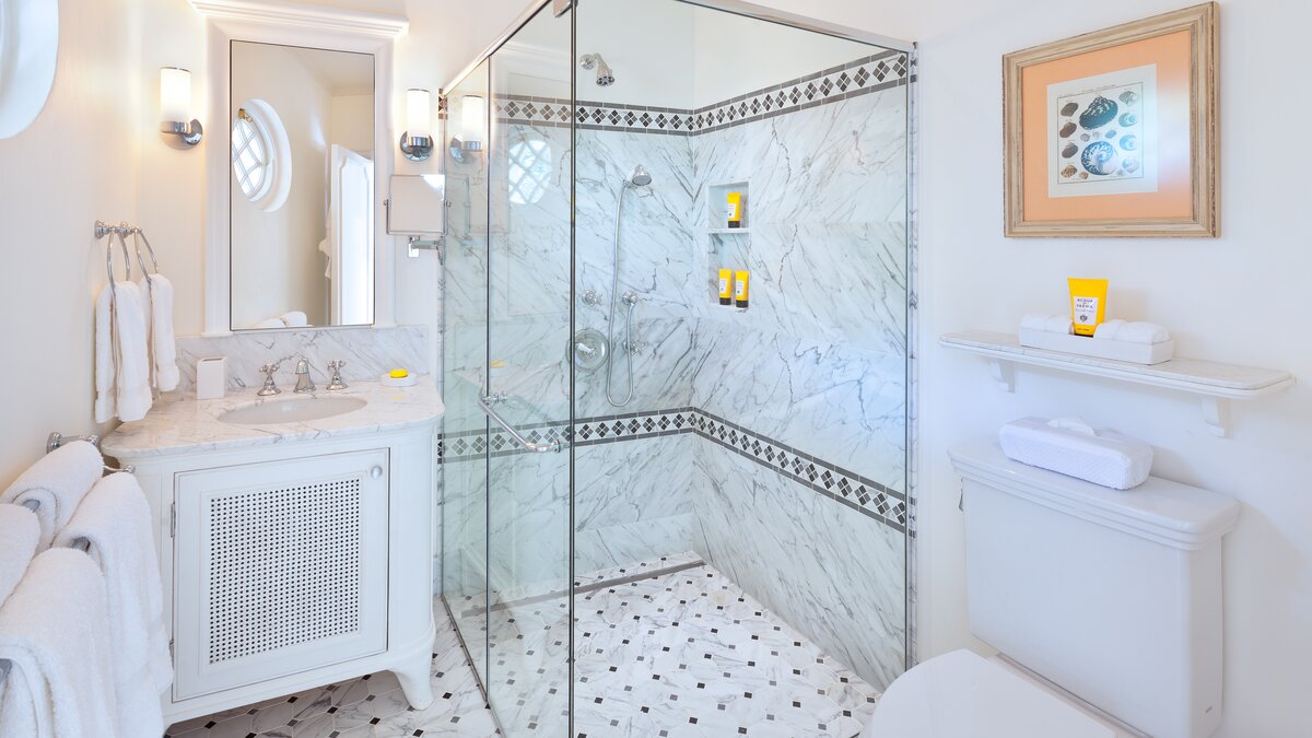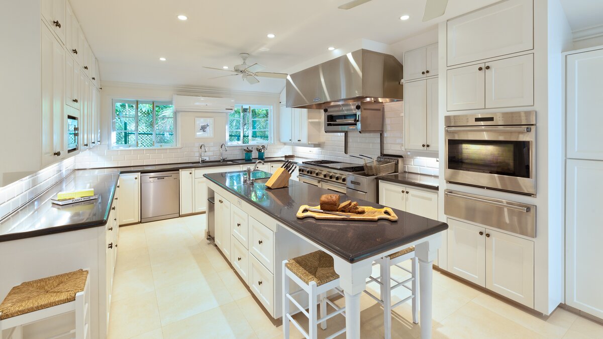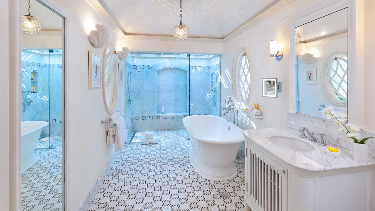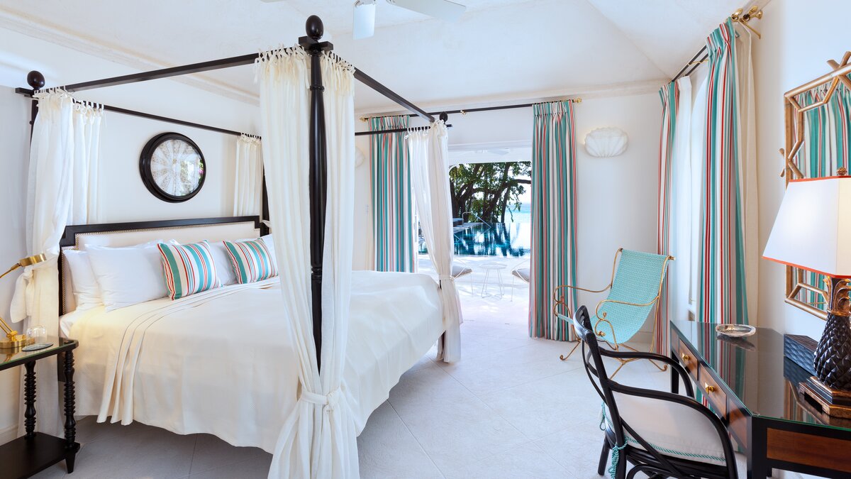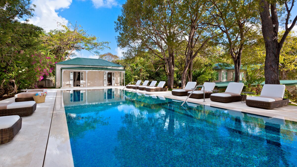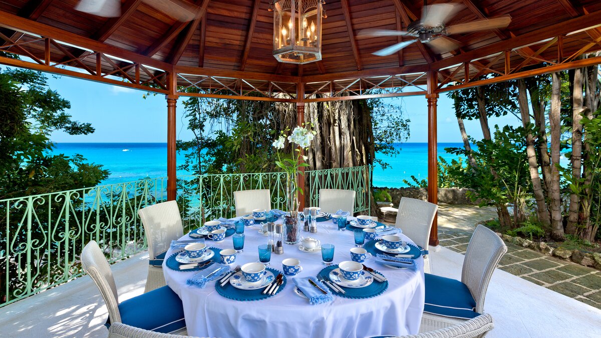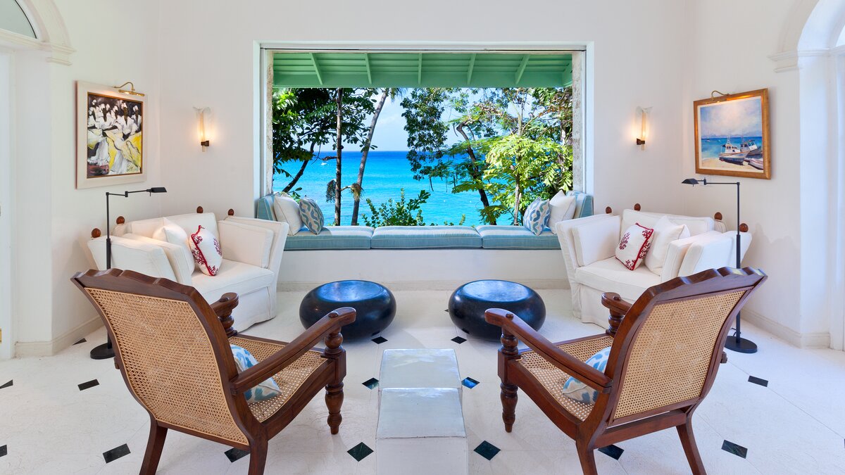 Im Haupthaus können die Gäste im Wohnzimmer entspannen und die Aussicht genießen oder auf der Terrasse speisen, die mit Deckenfresken verziert ist und einen herrlichen Blick auf das Meer bietet. Der Hauptschlafzimmer und 2 weitere Schlafzimmer-Suiten befinden sich ebenfalls im Haupthaus. Ein kurzer Spaziergang über die Brücke, die den natürlichen Wasserlauf durch das Anwesen überspannt, bringt Sie zum Annexe mit Bar, Sitzbereich und 2 Ein-Schlafzimmer-Suiten, und dann weiter auf die Terrasse auf den Klippen am Meer – einer der drei großartigen Bereiche, um im Freien zu speisen, einen Rum-Punsch bei Sonnenuntergang zu trinken oder einfach nachts mit Kerzen zu starren. Von dieser Terrasse aus sind es nur ein paar Schritte bis zum Poolbereich oder die Klippenstufen hinunter zur einsamen Strandbucht. Gegenüber dem Haupthaus befindet sich das Teehaus, in dem sich die 6. Schlafzimmer-Suite befindet. Es gibt auch ein klimatisiertes Heimkino, ein Poolhaus mit 2 Schlafzimmern en suite und den Pavillon mit 2 weiteren Schlafzimmer-Suiten und einem kleinen Fitnessraum.