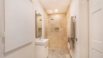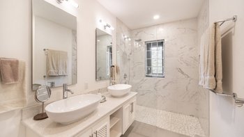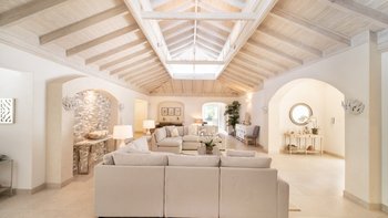 Entspannen Sie sich in der cremefarbenen Inneneinrichtung und lassen Sie sich von den luxuriösen Möbeln verwöhnen, die sich durch die gesamte Villa ziehen. Ein OFFENER GRUNDRISS Bereich mit viel Tageslicht, besteht aus einer voll ausgestatteten Küche, einem großzügigen Essbereich und einem großen Wohnbereich mit hohen Decken. Darüber hinaus gibt es ein Hauptschlafzimmer mit Dusche en suite sowie drei weitere Doppelschlafzimmer und Bäder.