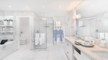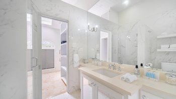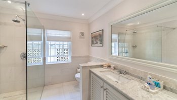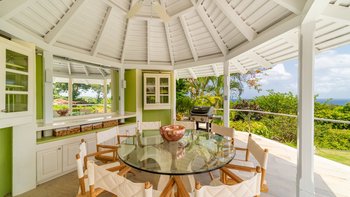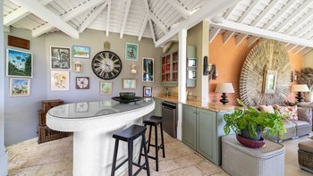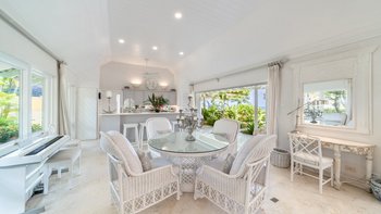 Im Inneren erwartet Sie ein geräumiges Wohnzimmer, das sich zu einem stilvollen Barbereich öffnet. Dessen Interieur der Villa verbindet Eleganz mit Komfort und verfügt über zwei separate Essbereiche: einen für formelle Anlässe und einen anderen für entspannte Mahlzeiten. Eine gut ausgestattete Küche ermöglicht kulinarische Erkundungen oder den Genuss von lokalen „Bajan“-Gerichten, die vom hauseigenen Koch zubereitet werden. Deren Villa bietet Platz für bis zu zehn Gäste in fünf klimatisierten Schlafzimmern, jedes mit eigenem Bad. Drei Schlafzimmer befinden sich im Haupthaus, während zwei in separaten Cottages untergebracht sind und eine ideale Mischung aus Gemeinschaftsleben und Privatsphäre bieten. Für zusätzliche Entspannung verfügt die Villa über einen klimatisierten TV-Raum mit bequemen Tagesliegen. Das durchdachte Design des Point of View erstreckt sich auch auf die Außenbereiche mit zwei Swimmingpools, einem Pavillon und weitläufigen Sonnenterrassen, die alle in einem 2 Hektar großen, üppigen tropischen Garten liegen. So können die Gäste während ihres Aufenthalts sowohl gemeinsame Erlebnisse und auch Momente der Einsamkeit genießen.