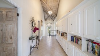 Im Inneren befinden sich eine große Küche und ein komfortables Wohnzimmer mit französischen Türen, die zur Terrasse führen. Es gibt auch das erste von vier wunderschön eingerichteten Schlafzimmern mit eigenem Bad und einem zusätzlichen Badezimmer, das bequem als Umkleidekabine für die Nutzung des Pools positioniert ist. Auf der oberen Ebene befinden sich drei weitere Schlafzimmer mit eigenem Bad mit Dusche, zwei Doppelbetten und ein Zweibett. Es gibt auch ein charmantes, in sich geschlossenes Cottage mit privatem Tauchbecken auf dem Grundstück, ideal für Paare, die einen romantischen Ort suchen, oder für kleine Familien, die ein wenig Privatsphäre suchen. Ein erfahrenes Personal aus Butler, Koch und Hausmeister und Nachtwächter runden das Erlebnis der Villa ab.