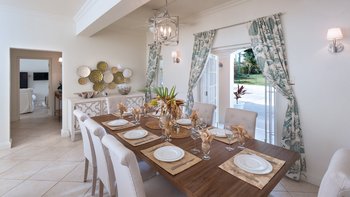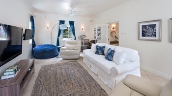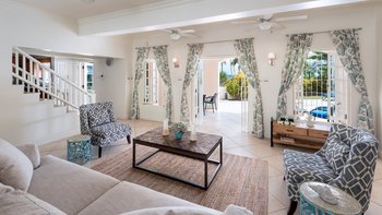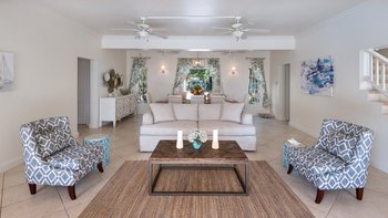 Sundown ist eine großartige und komfortable Unterkunft für Gruppen von Freunden und Familien von bis zu zehn Personen. Ideal gelegen, ist es etwas zurückversetzt, um Ruhe und Privatsphäre mit bemerkenswertem Blick auf das Meer zu genießen, während der Sandstrand von Mullins nur einen kurzen Spaziergang entfernt ist. Sundown ist innen und außen wunderschön gestaltet und bietet seinen Gästen Komfort und Genuss gleichermaßen, indem es in kühlen und beruhigenden Blautönen dekoriert ist. Im Erdgeschoss befindet sich eine voll ausgestattete Küche, in der der Koch der Villa sechs Tage in der Woche drei Mahlzeiten pro Tag zubereitet. Dazu gehören eine Frühstückstheke und ein Küchentisch. Des großen Wohn- und Esszimmer bietet viel Platz zum Entspannen und Essen im Innenbereich mit Doppeltüren, die zur Terrasse führen. Draußen gibt es eine schattige Terrasse neben dem Haus mit bequemen Sitzgelegenheiten mit Blick auf den Privater Pool in der Mitte der Rasenfläche. Ans unteren Ende des Gartens gibt es eine Hängematte zum Schlummern am Nachmittag und eine Pergola zum Essen, die beide von hohen, wiegenden Palmen umgeben sind