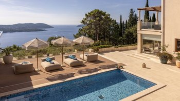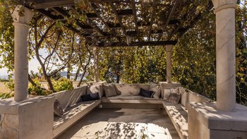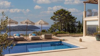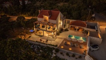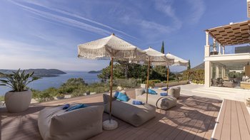 Die Villa Daisy ist wunderschön gestaltet, um die atemberaubende Umgebung zu betonen, und es dreht sich alles um das Leben im Freien. Nur 1,6 km von der Küste entfernt befindet sich eine atemberaubende Aussicht von der Panoramaterrasse bis hinunter zum Meer. Ein schattiger Bereich ist für Mahlzeiten im Freien eingerichtet, mit einer Außenküche und einem Grill, während ein herrlicher Privater Pool im Mittelpunkt steht. Liegestühle am Pool stehen bereit, um die Aussicht zu genießen, und eine charmante, mit Weinreben bedeckte Pergola bietet einen malerischen Ort, um sich mit einem guten Buch zu entspannen.