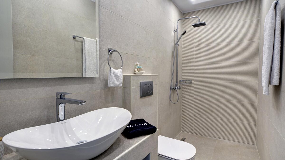 Im Inneren entfaltet sich die Villa wie ein gut durchdachter Roman, mit durchdachten Innenräumen, die Wärme und Raffinesse ausstrahlen. Der offene Wohnbereich, der in natürliches Licht getaucht ist, fließt nahtlos vom Wohnzimmer über das Esszimmer bis zur Küche, wobei jeder Raum einladender ist als der andere. Beiden Schlafzimmer dienen als persönliche Zufluchtsorte, mit einem eigenen Bad, das jedem Gast einen Hauch von Verwöhnung verleiht. Denen Küche, eine Leinwand für kulinarische Kreativität, verfügt über erstklassige Geräte, die selbst den widerstrebendsten Koch dazu bringen würden, ein Fest lokaler Köstlichkeiten zu zaubern.