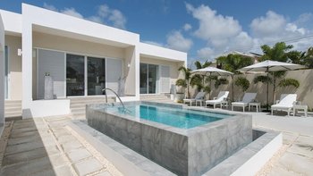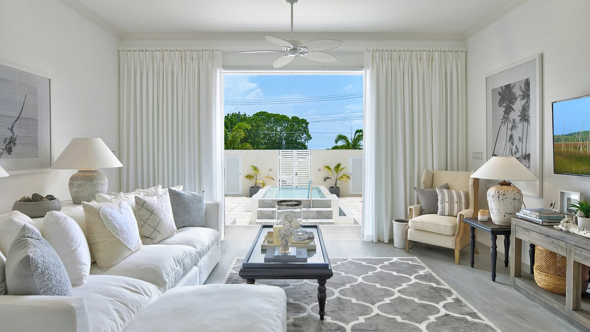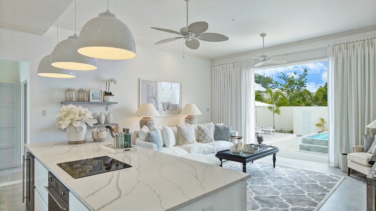 Im Inneren besticht die Villa durch ein modernes Design, das Wärme und Entspannung ausstrahlt. Deren geräumige Wohnbereich mit natürlichem Licht besticht durch eine beruhigende weiße Farbpalette, die die ruhige Atmosphäre unterstreicht. Deren moderne Küche mit Frühstückstheke und Insel lädt die Gäste zu zwanglosen Mahlzeiten oder einem morgendlichen Kaffee ein. Jedes der drei Schlafzimmer wurde sorgfältig für Komfort gestaltet, wobei die Master-Suite Blick auf den Innenhof und den Pool bietet, während die anderen beiden Zimmer gemütliche Rückzugsorte für erholsame Nächte bieten.