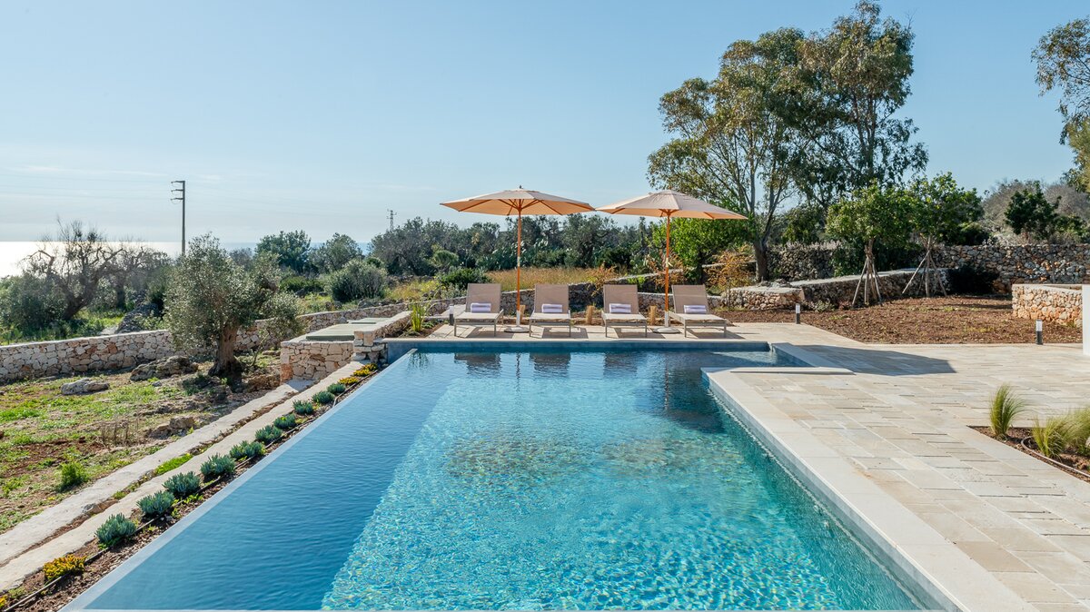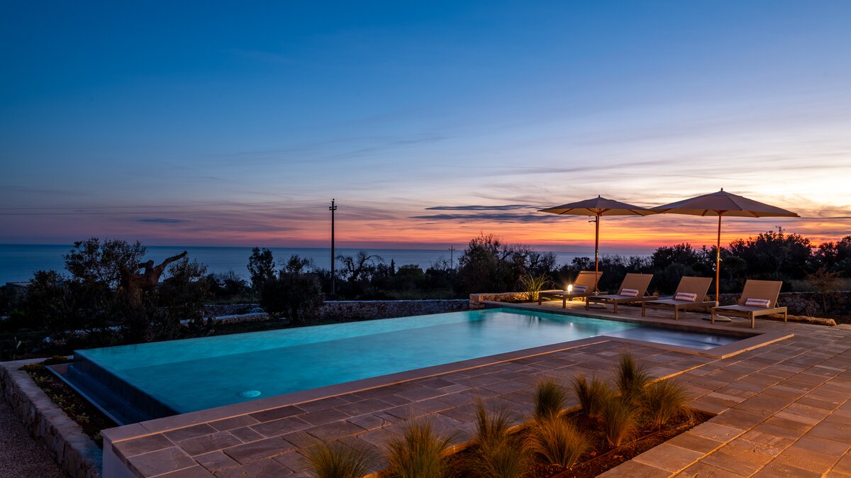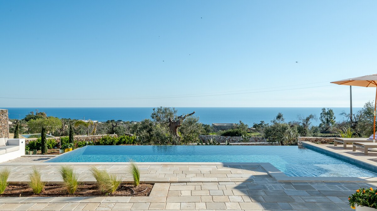 Auf dem Weg nach draußen werden die Gäste vom privaten Infinity-Pool mit malerischem Meerblick beeindruckt sein. Deren umliegende Poolterrasse mit eleganten Sonnenliegen und eingebauten Sitzgelegenheiten für einen Sundowner verfügt über einen schattigen Essbereich im Freien mit einem Grill. Denen Gäste haben auch Zugang zur möblierten Dachterrasse.