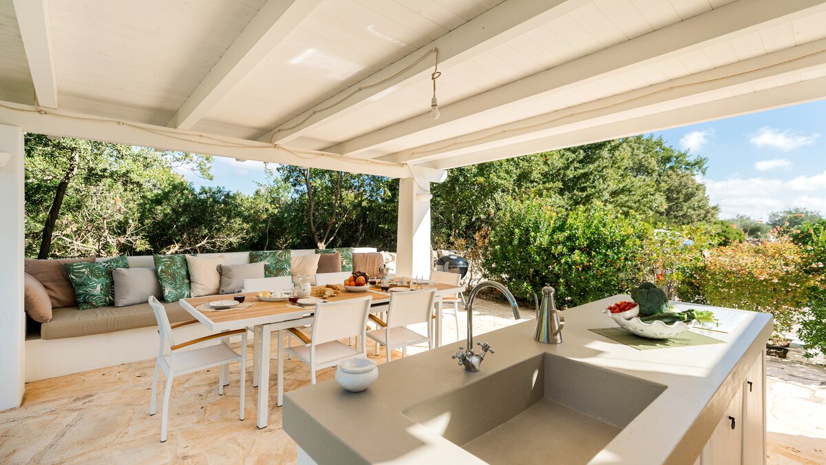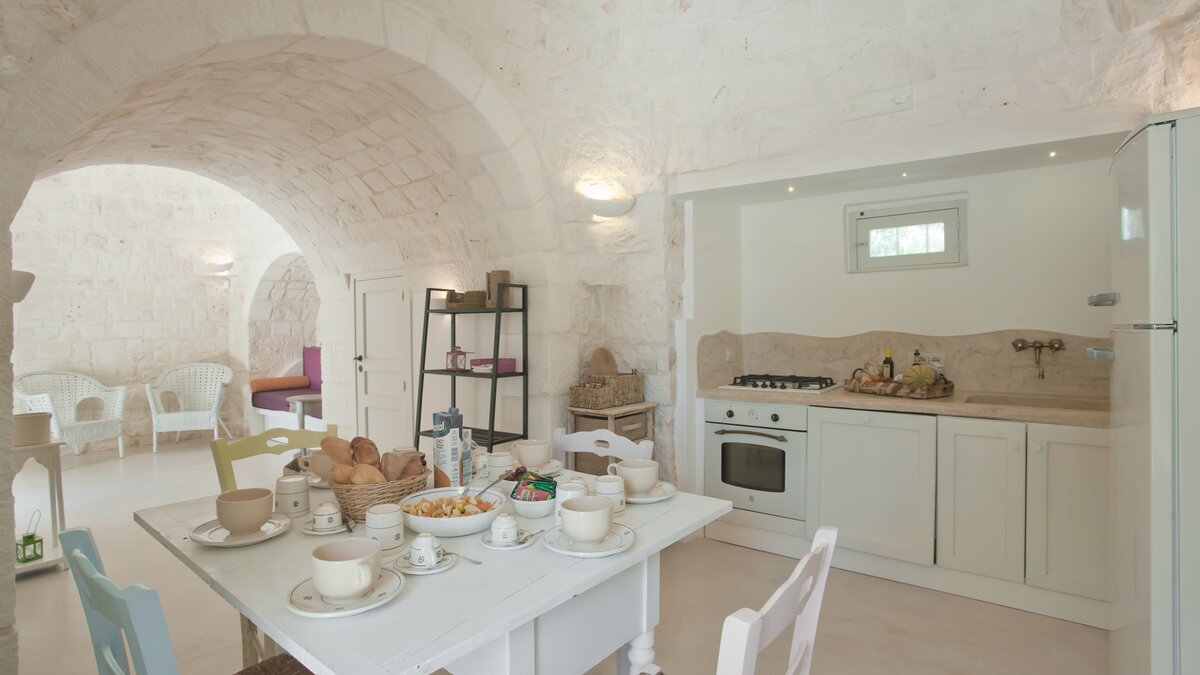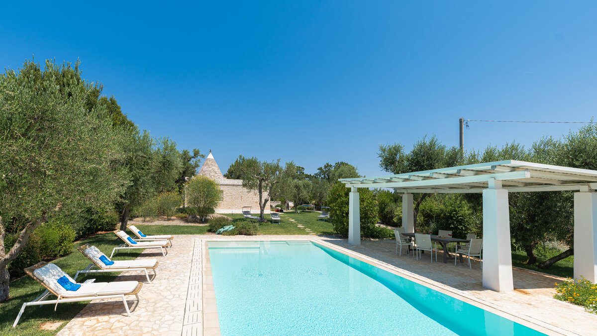 Das Valle d’Itria ist eine stimmungsvolle Gegend, die für ihre kegelförmigen Trulli-Wohnungen bekannt ist und die ideale Lage für ein Festmahl an charmanten Städten und eine Auswahl an herrlichen Stränden bietet. Obstgärten und Weinberge tanken die Sonne in ihrer fruchtbaren und fotogenen Landschaft und bilden den Rahmen für diese bezaubernde Familienvilla in Apulien. Ihre zwei hohen Kegel und die weiß getünchten Mauern, die einen Meter dick sind, sorgen für eine erfrischende Kühle und einen bemerkenswerten Charakter. Denen Villa ist wie der Stolz des lokalen Eigentümers im Landhausstil eingerichtet und verfügt über eine Küche, ein Wohnzimmer und einen kleinen Sitzbereich, wo farbenfroh gepolsterte Sitzgelegenheiten in einen architektonischen Bogen eingebaut sind. Die drei Schlafzimmer sind mit fröhlicher Einfachheit eingerichtet, und es gibt zwei Duschräume und zwei überdachte Essterrassen, von denen eine jetzt über eine beeindruckende, voll ausgestattete Außenküche mit Insel verfügt. All dies befindet sich in einem weitläufigen Garten mit Rasenflächen, Kakteenbeeten und Blumenbeeten, die den Pool und einen angrenzenden Speisepavillon zwischen den Olivenbäumen umgeben. Giu al Trullos ruhige Lage ist nur 3 km vom Supermarkt und ausgezeichneten Restaurants in der ummauerten Marktstadt Cisternino entfernt; und die „weiße Stadt“ Ostuni, der Strand von Torre Cane und ein Golfplatz sind alle innerhalb von 20 km. Sehr privat, aber in unmittelbarer Nähe von Geschäften und ausgezeichneten Restaurants und mit zwei geräumigen Schlafzimmern ist dieses charmante Anwesen ein absoluter Favorit bei CV-Gästen.