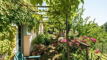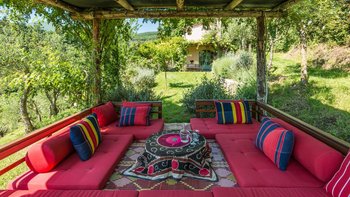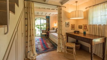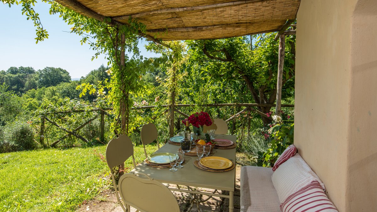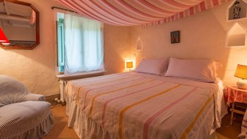 Die Lage ist hervorragend für diesen Honeymoon Hideaway. Eingebettet in grasbewachsene Gärten in den wunderschönen Hügeln der südlichen Toskana, verbindet die Villa die Ruhe der Landschaft mit einfachem Zugang zu Cetona, seinen engen Gassen und der belebten Piazza, die etwa 500 Meter entfernt ist. Nach einer phantasievollen Restaurierung, innen und außen, hat die Villa ein rustikal-schickes Gefühl, mit ihren Terrakotta-Fliesenböden, den fröhlichen Teppichen und Stoffen und den weiß getünchten Balkendecken. Mit einem Schlafzimmer mit Doppelbett im Obergeschoss, das kompakte Wohnzimmer im Erdgeschoss verfügt über Doppeltüren zu einer schattigen Terrasse im Freien, die kleine Küche öffnet sich zu einem Gemüsegarten und ein Arbeitszimmer im Innenflur führt in den Essbereich.