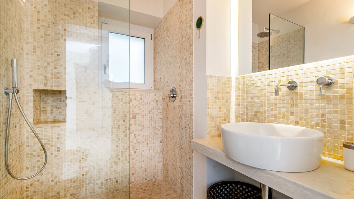 Im Inneren können die Gäste die OFFENER GRUNDRISS Küche, den Ess- und den Wohnbereich nutzen. Mit viel Tageslicht und modernen, eleganten Möbeln bietet dieser Bereich eine entspannte und beruhigende Atmosphäre. Mit großen französischen Türen, die sich zum Außenbereich öffnen, kann ein nahtloses Leben im Innen- und Außenbereich genossen werden. Weiters in der Villa gibt es ein Schlafzimmer mit Doppelbett, einen großen Kleiderschrank und ein Duschbad.