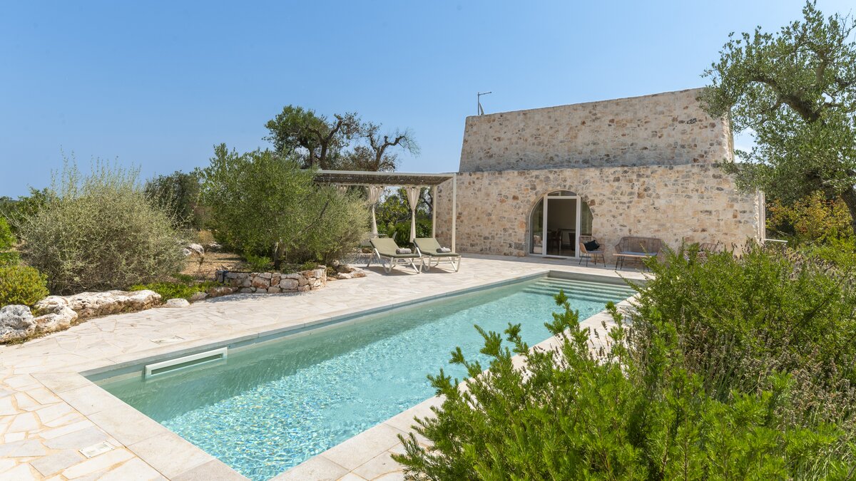 Diese zweihundert Jahre alte Trullo-Villa befindet sich in einem 5 Hektar großen, alten Olivenhain und ist somit der ideale Aufenthalt für jedes Paar, das eine geschmackvolle Inneneinrichtung und eine ruhige Umgebung sucht.