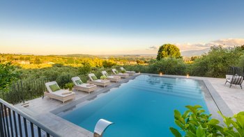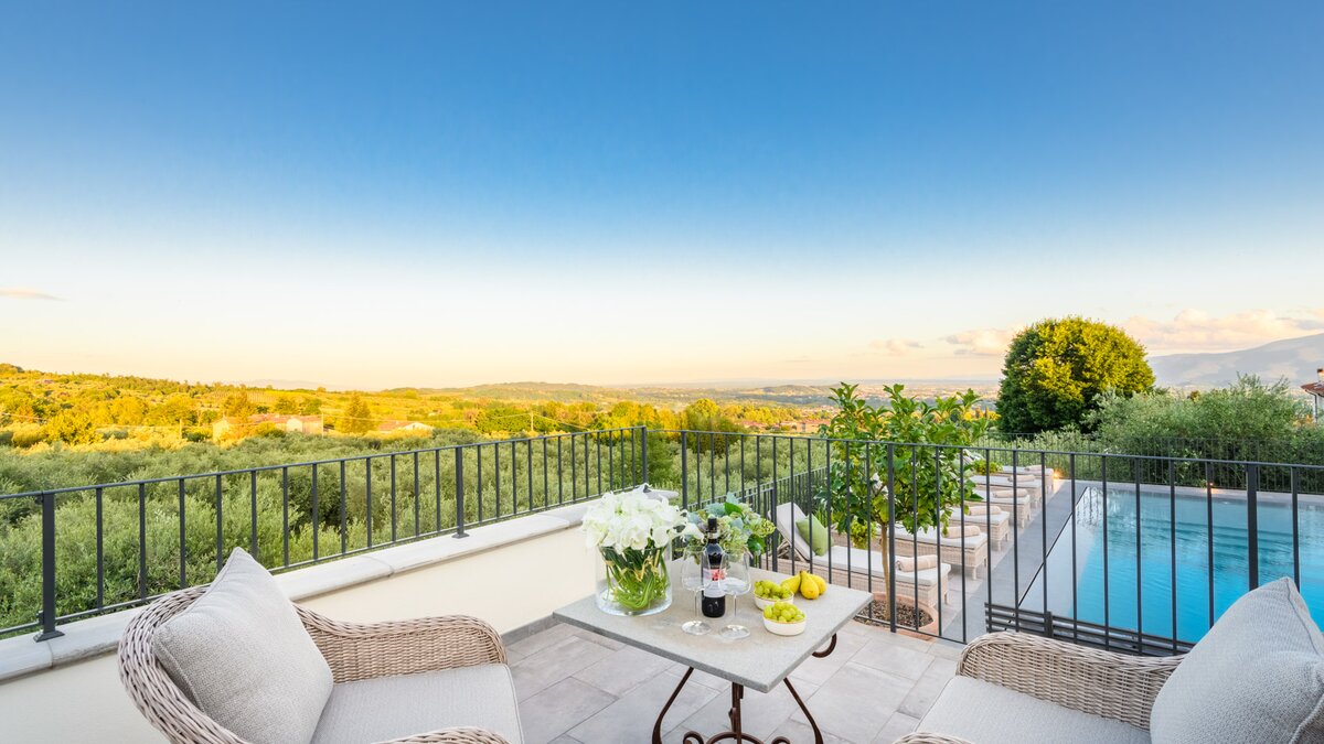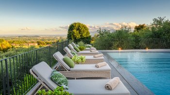 Die Villa Aurelio liegt in den malerischen Hügeln östlich von Lucca und ist ein wunderschöner Rückzugsort inmitten friedlicher Olivenhaine und der weitläufigen toskanischen Landschaft.