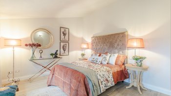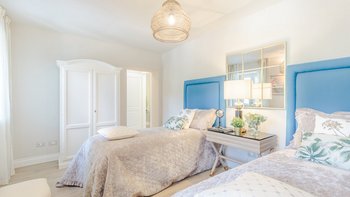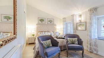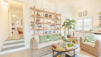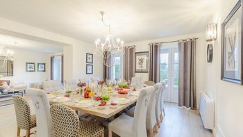 Diese geräumige Unterkunft verbindet traditionellen Charme mit moderner Eleganz und ist mit Komfort im Verstand gestaltet. Weiß getünchte Wände, sorgfältig kuratierte Innenräume und sanfte neutrale Farbtöne schaffen eine Atmosphäre der Ruhe in den weitläufigen Wohnräumen, während die großzügigen Zimmer mit offenem Schnitt es Gruppen leicht machen, sich zu entspannen und zusammenzukommen.