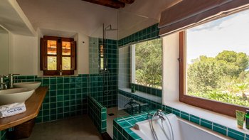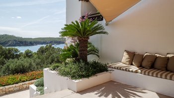 Das Highlight des Anwesens ist sein weitläufiges Grundstück mit einem großen Garten im Innenhof und einem Poolbereich mit Blick auf die herrliche Aussicht, die das Haus ideal für Hochzeiten und andere Feiern macht. Es gibt auch einen privaten Weg, der zu einem weitläufigen Raum führt, der ideal für faule Spaziergänge und Blick über die Bucht ist. Deren Villa befindet sich nur einen Spaziergang von Geschäften, Restaurants, Cafés und Bäckereien entfernt, während der nächste Strand – S’Illot d’es Rencli – ebenfalls nur einen Spaziergang entfernt ist.