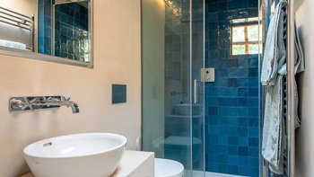 Im Nebengebäude aus Stein versteckt, gibt es einen gemütlichen Wohnbereich und eine Küchenzeile mit Fenstertüren, die zu einem schattigen Sitzbereich führen, und zwei Doppelschlafzimmer, beide mit eigenem Bad. Dieser freistehende Gebäude ist ideal für Gäste, die während ihres Aufenthalts etwas Privatsphäre wünschen.