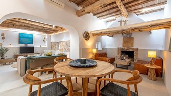 Diese schicke und im Boho-Stil gestaltete Villa befindet sich auf einem zwei Hektar großen, wunderschön gepflegten Grundstück und ist der perfekte Rückzugsort für alle, die in der ibizenkischen Landschaft entspannen möchten.