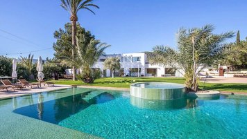 Wunderbar inmitten weitläufiger Gärten, in der Nähe des Blue Marlin, gelegen, ist Casa Mare eine stilvolle und geräumige Villa auf Ibiza. Von ihrer beneidenswerten Lage aus bietet die Villa einen weiten Blick, den man am besten vom ruhigen Privater Pool unter wiegenden Palmen aus genießen kann. Im Inneren ist die Einrichtung modern und im Boutique-Stil eingerichtet, darunter ein Wohnzimmer, eine gut ausgestattete Küche und ein Esszimmer. Deren Unterkunft verteilt sich auf fünf geräumige und moderne Schlafzimmer. Deren zusätzliche Nebengebäude ist ideal für Gäste, die Privatsphäre und Nähe miteinander verbinden möchten, und bietet unabhängigen Zugang zu einer Küche, einem Wohn- und Essbereich, zwei Schlafzimmern mit eigenem Bad und einer kleinen Terrasse.