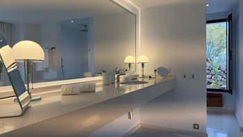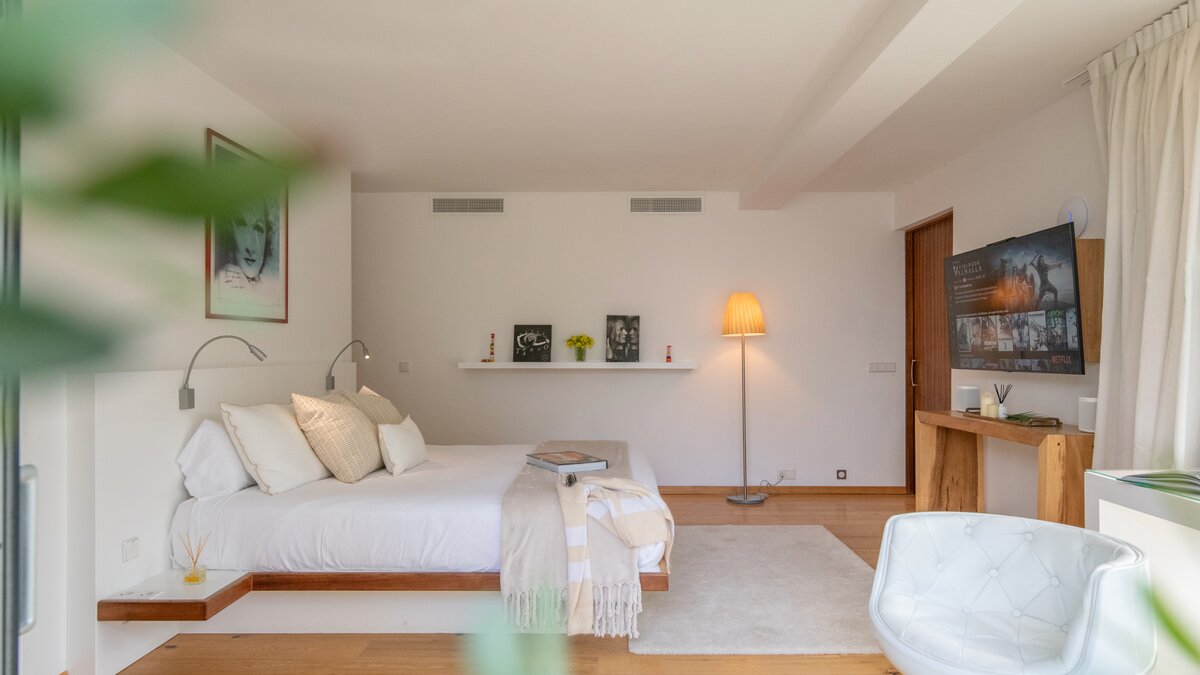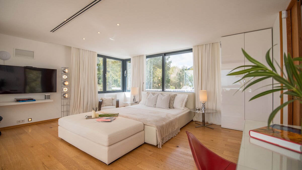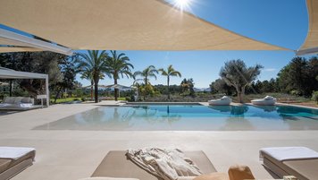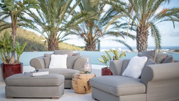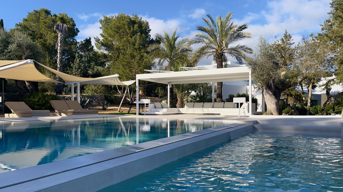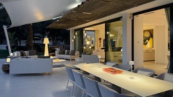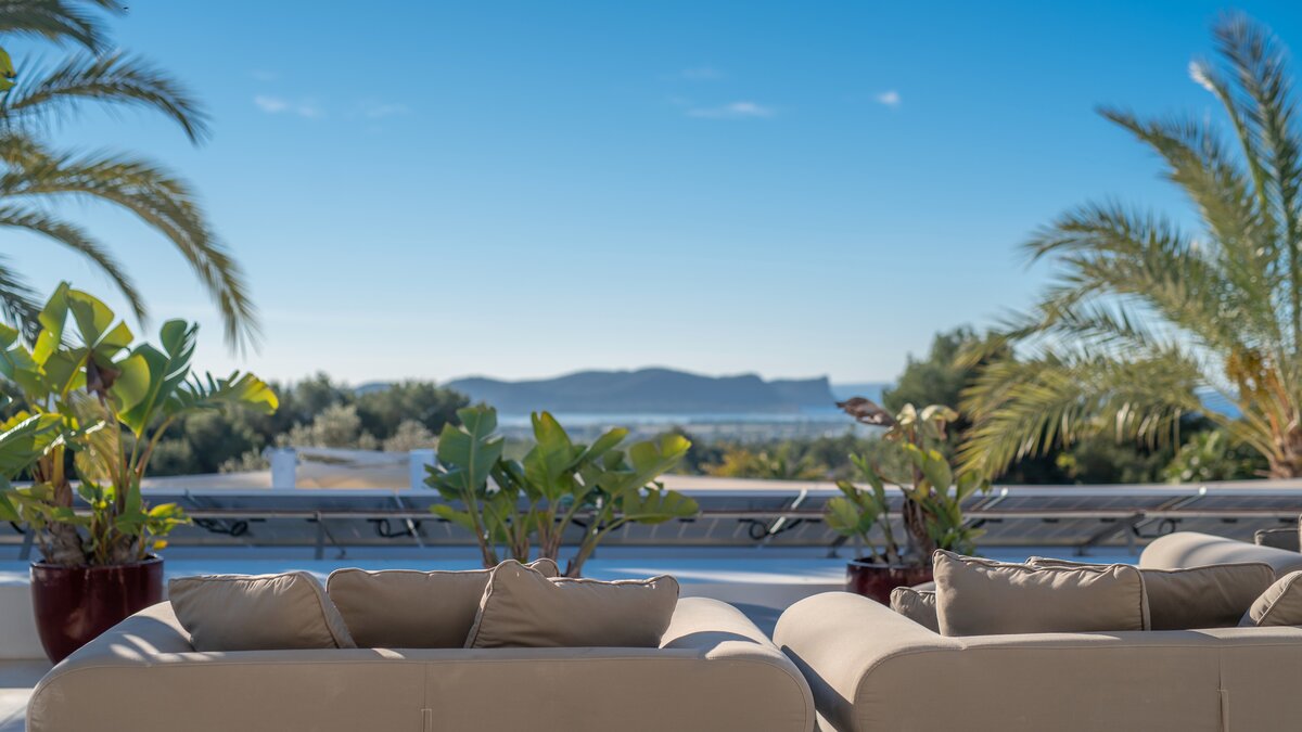 Der vierzehn Meter lange Infinity-Pool, dessen Eingang im Strandstil einen wirklich nahtlosen Übergang ins Wasser ermöglicht. Nach dem Schwimmen können Sie sich in die Lounge im Freien oder auf die Dachterrasse mit Blick auf Playa d’en Bossa, die Salinen und die Insel Formentera begeben und einen entspannenden Cocktail genießen, während die Sonne Nacht für Nacht untergeht. Alternativ bieten die Außenlounges der Villa Komfort im Freien in einer gemütlichen, ruhigen Umgebung.