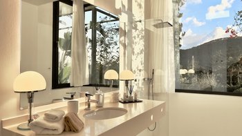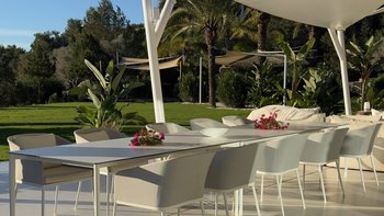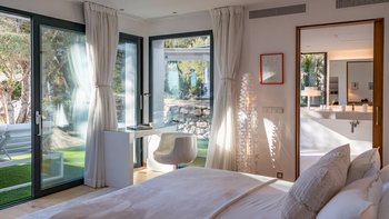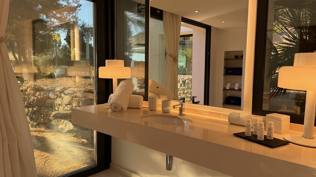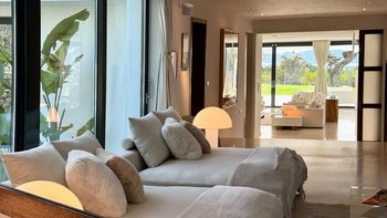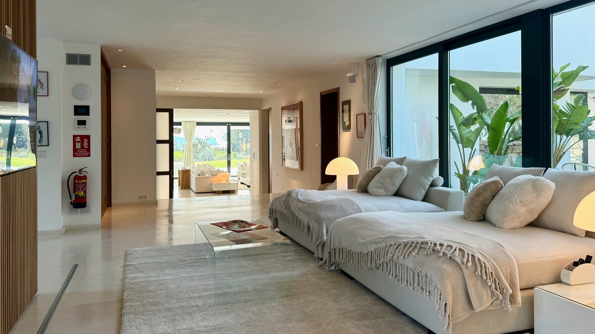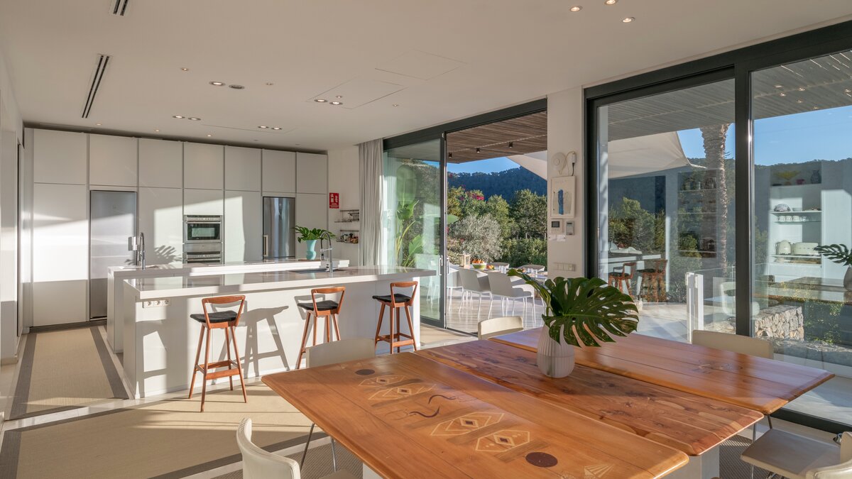 Direkt an der Küste Ibizas gelegen, ist die Finca Tia ein modernes Paradies, ideal, um die Sonne und den atemberaubenden Blick auf das azurblaue Mittelmeer Spaniens zu genießen.