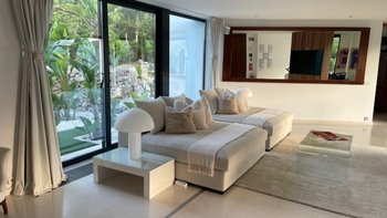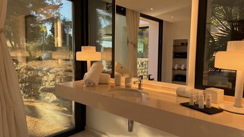 Das helle und luftige Ambiente der Villa wurde sorgfältig gestaltet, um das natürliche Licht, das die Region so großzügig bietet, optimal zu nutzen und jederzeit auf subtile Weise an die natürliche Schönheit der Region zu erinnern. Im Erdgeschoss öffnet sich der elegante OFFENER GRUNDRISS Küchen- und Essbereich direkt auf die Terrasse, wo Sie am Abend unter dem unverwechselbaren Nachthimmel speisen können, der diese Insel so besonders macht. Deren Villa verfügt über zwei geräumige Innen-Lounges mit hohen Decken und raumhohen Glastüren und zahlreiche Unterhaltungsmöglichkeiten, darunter ein 4K-Projektor, eine vier Meter breite Leinwand und erstklassige Audiosysteme. Alle Schlafzimmer im Erdgeschoss verfügen über einen eigenen Gartenbereich, zusätzlich zu den jeweils eigenen Suiten. Im Obergeschoss befinden sich im ersten Stock zwei Kingsize-Suiten, beide mit Panoramablick und direktem Zugang zur Dachterrasse.