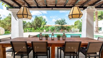 Die Villa Gertrudis liegt ideal in der Nähe von Santa Gertrudis, einem charmanten kleinen Dorf mit schönen Restaurants, Geschäften und Bars. Deren zentrale Lage der Villa macht es zu einem perfekten Ort, von dem aus man die Insel in alle vier Himmelsrichtungen erkunden kann. Dessen Haus ist eine perfekte Kombination aus typisch ibizenkischer Architektur, kombiniert mit modernem Komfort und Design. Deren Mittelpunkt des Hauses, um lange Sommertage zu genießen, ist der atemberaubende Poolbereich. Deren Pergola am Pool beherbergt einen komfortablen Sitzbereich im Freien sowie einen Esstisch im Freien, der Platz für bis zu 10 Personen bietet. Deren Außenküche mit Grill, Herd und Kühlschrank vervollständigt diesen Raum und macht es zum perfekten Ort für den ganzen Tag zum Faulenzen und Essen und. Es gibt einen Garten im andalusischen Stil mit Orangenbäumen und einem Wasserbrunnen, der sich ideal für einen Aperitif eignet, während man den Vögeln lauscht. Ein wunderschönes balinesisches Haus auf der anderen Seite des Grundstücks lädt die Gäste zu einer „Siesta“ im Schatten ein. Es gibt auch einen schönen Obstgarten mit verschiedenen Obstbäumen, die frisches Obst liefern, das die Gäste während der Saison genießen können.