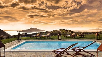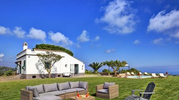 Eine herrliche Villa mit vier Schlafzimmern in der Nähe von Sant’Agata, Italien, Miracapri verspricht charmante Essbereiche im Freien, Blick auf das Meer und luftige Innenräume, alle nur 15 Minuten zu Fuß von den Restaurants im Dorf Termini entfernt.
