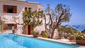 Die bezaubernde Villa Celeste genießt einen atemberaubenden Meerblick von seiner erstklassigen Lage über der Bucht von Marina del Cantone, südlich von Sorrento, und ein erhabener Privater Pool.