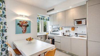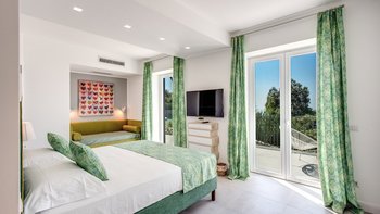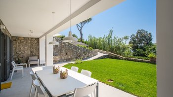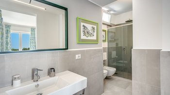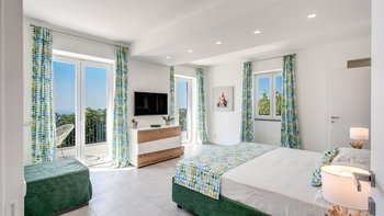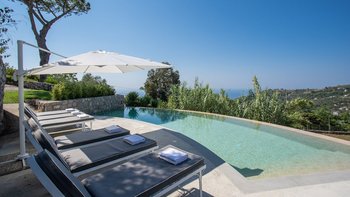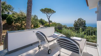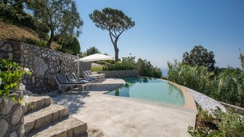 Im Außenbereich glänzt die Villa Mezzaluna mit weitläufigen Terrassen, auf denen man im Freien speisen und sich inmitten der mediterranen Gärten entspannen kann. Dessen Highlight ist der Infinity-Pool mit Blick auf den Golf von Neapel und bietet eine idyllische Kulisse für sonnige Nachmittage. Nur eine kurze Autofahrt entfernt lockt die Bucht von Nerano mit ihren einladenden Gewässern, während die ikonische Schönheit von Positano nur 15 Kilometer entfernt ist. Sorrento, das für seine lebendigen Gebäude, Geschäfte und Restaurants bekannt ist, ist nur 10 Kilometer entfernt. Mit seiner ruhigen Lage und der Nähe zu den Sehenswürdigkeiten der Amalfiküste ist die Villa Mezzaluna der perfekte Ausgangspunkt für Ihren Italienaufenthalt. Für diejenigen, die die Küste erkunden möchten, bietet sich ein Bootsverleih vor Ort an, der leicht über unser Team organisiert werden kann.