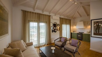 Der bezaubernde Blick über den Hafen von Fiscardo von der Dachterrasse des Odele ist eines der Highlights dieser schönen Villa und die Besucher werden die Nähe zu den stilvollen Restaurants und Cafés von Fiscardo lieben. Der Eigentümer dieser Immobilie hat darauf geachtet, dass die Gäste gut betreut werdenund Es gibt viele zusätzliche Extras wie einen gefüllten Kühlschrank mit Frühstücksartikeln bei der Ankunft und eine kostenlose Bar mit einer Auswahl an Spirituosen und Fahrrädern, die Sie ohne Aufpreis nutzen können. Denen Villa ist sehr gut ausgestattet und stilvoll eingerichtet mit zwei großen Doppelzimmern im Erdgeschoss (jedes kann als Zweibett eingerichtet werden) mit eigenem Duschbad und Zugang zur Poolterrasse. Im ersten Stock gibt es ein offenes Grundriss Wohnzimmer, ein Esszimmer und eine Küche, die zu einer großen Terrasse mit herrlichem Blick auf das Meer führt. Draußen gibt es einen sehr attraktiven Swimmingpool und eine gemütliche Terrasse mit Grill und Kräutergarten (für die Gäste zur Selbsthilfe). Odele teilt sich das Anwesen mit seinen Schwestervillen Merope und Fauna und ist nur fünf Minuten zu Fuß (100m) vom Hafen und Restaurants von Fiscardo entfernt.