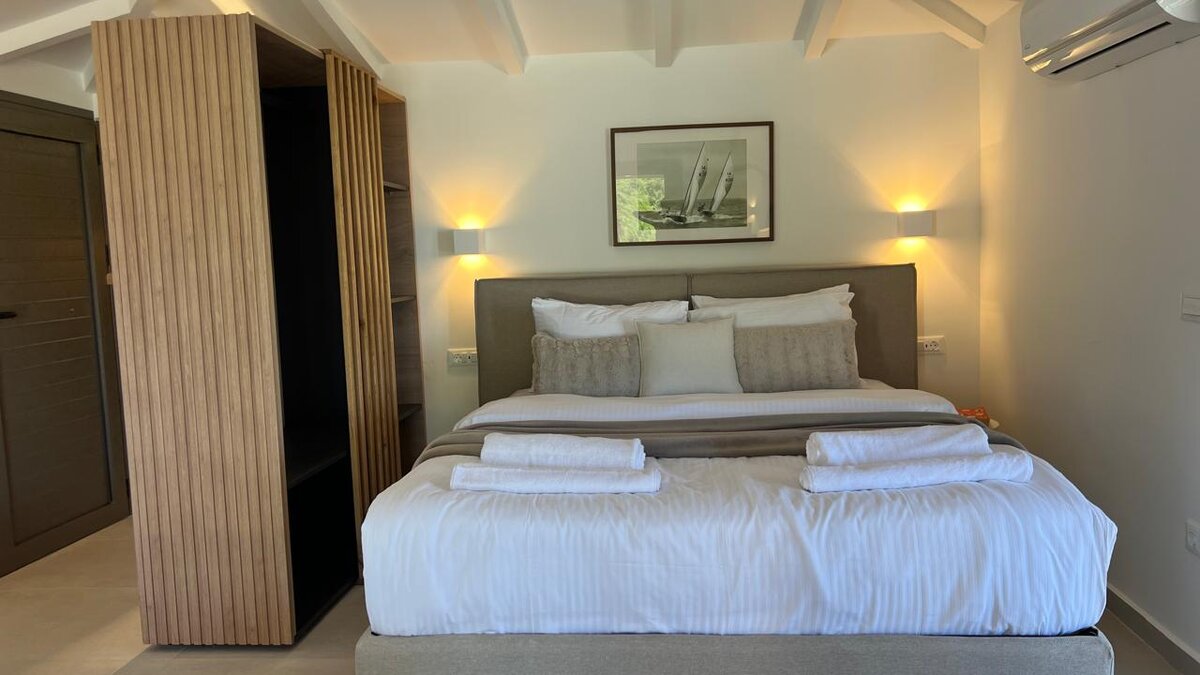 Direkt über einer kleinen Sandbucht gelegen, bietet die Villa einen herrlichen Blick auf das Meer und eine ruhige Naturkulisse. Im Inneren befindet sich ein lichtdurchfluteter, offener Wohn-, Ess- und Küchenbereich, der sich direkt auf die Terrasse und den Pool öffnet und eine nahtlose Verbindung zwischen Innen- und Außenbereichen schafft. Dessen Schlafzimmer mit Doppelbett verfügt über ein modernes Bad mit Dusche und bietet einen beruhigenden Blick auf die umliegende Landschaft.