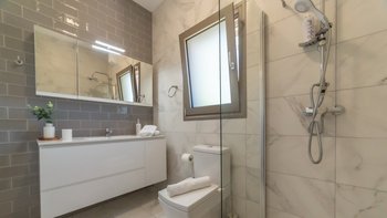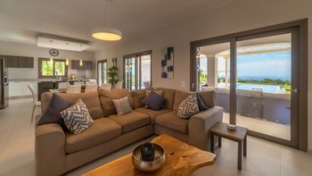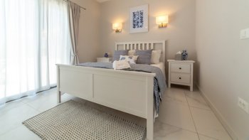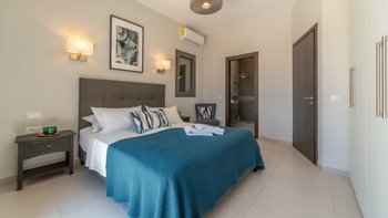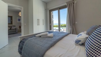 Im Obergeschoss befinden sich drei stilvolle Schlafzimmer mit luxuriösen Kingsize-Betten, eigenem Bad und viel Stauraum im Kleiderschrank. Zwei der Zimmer öffnen sich auf einen eigenen Balkon mit Blick auf das Meer und die Gärten. Dessen viertes Schlafzimmer befindet sich im Erdgeschoss und ist ideal für Gäste, die lieber Treppen vermeiden möchten.