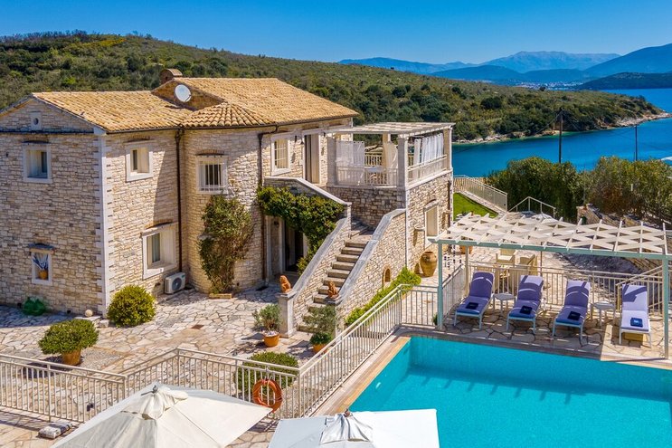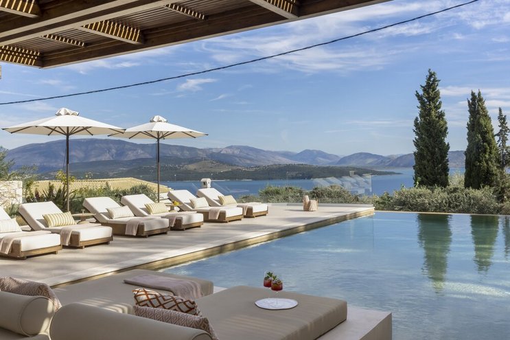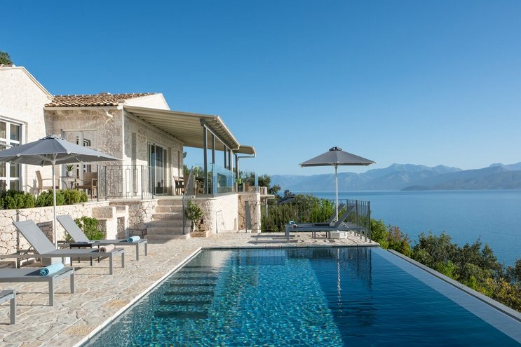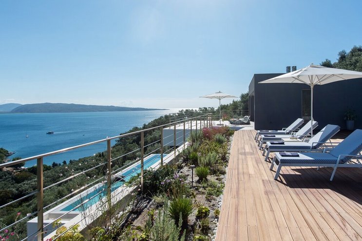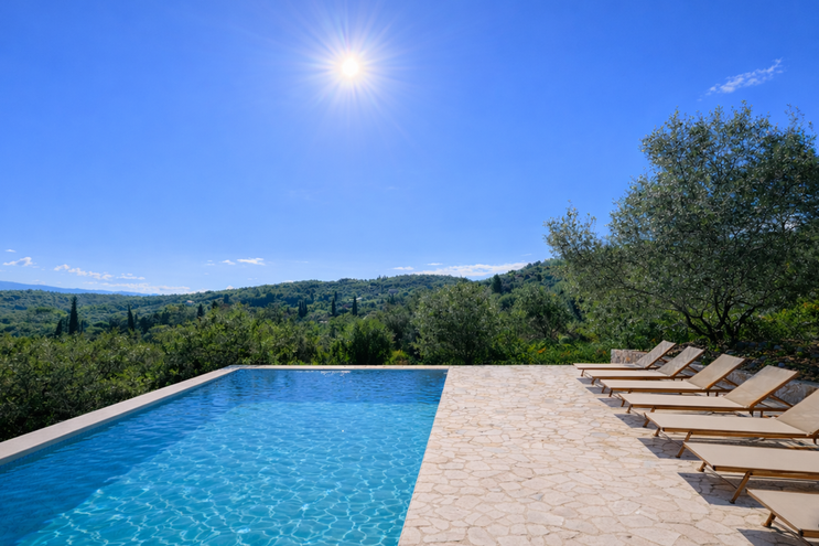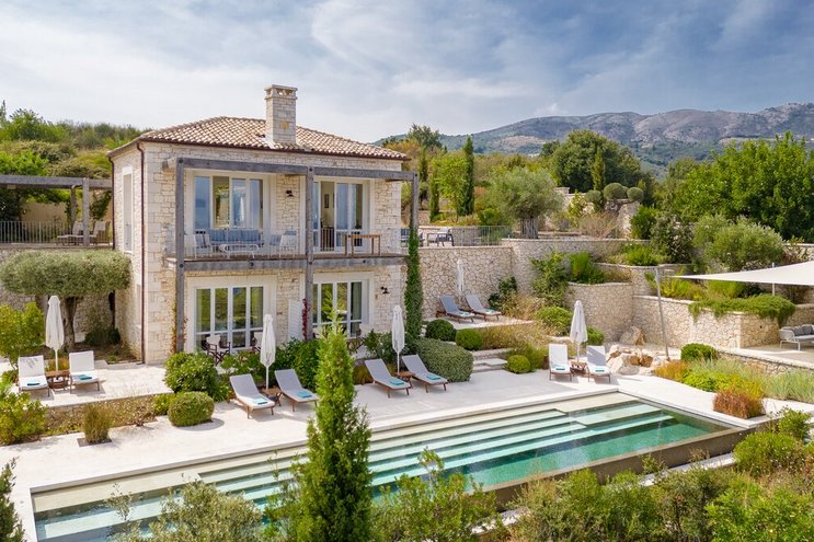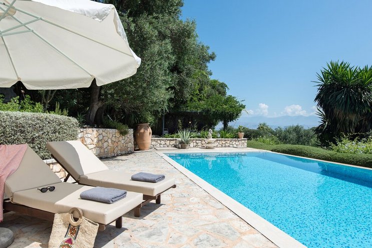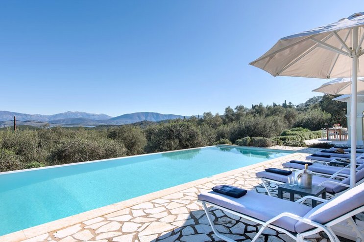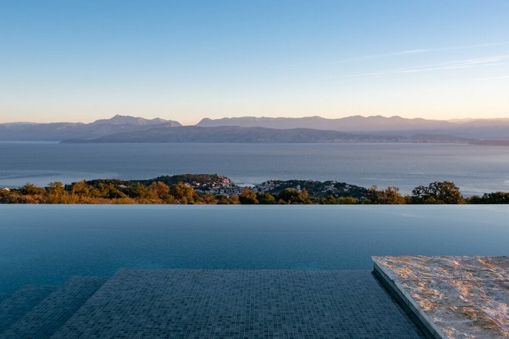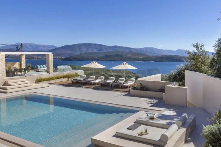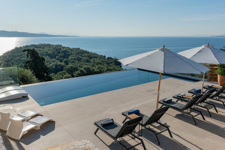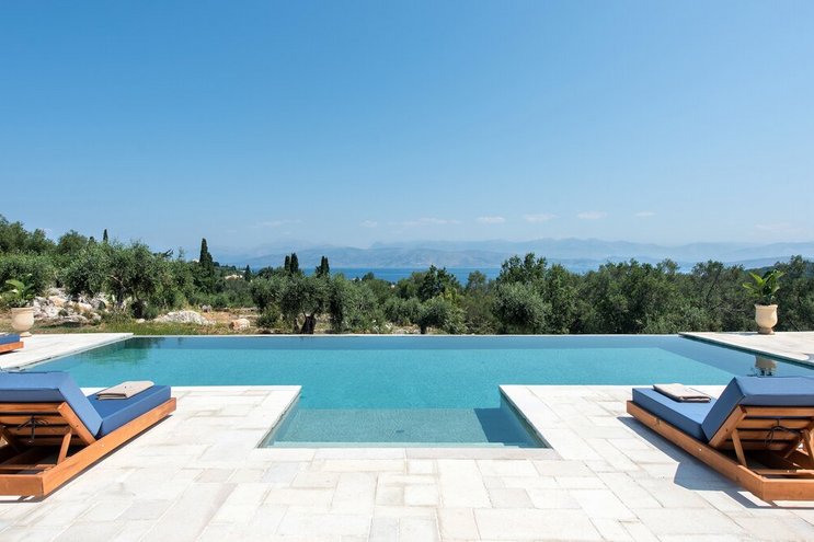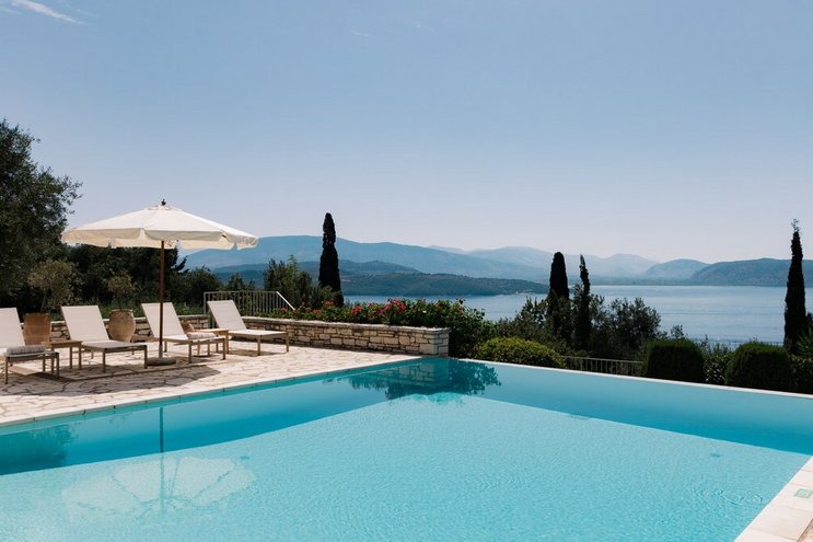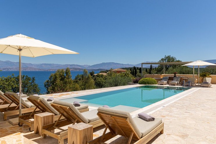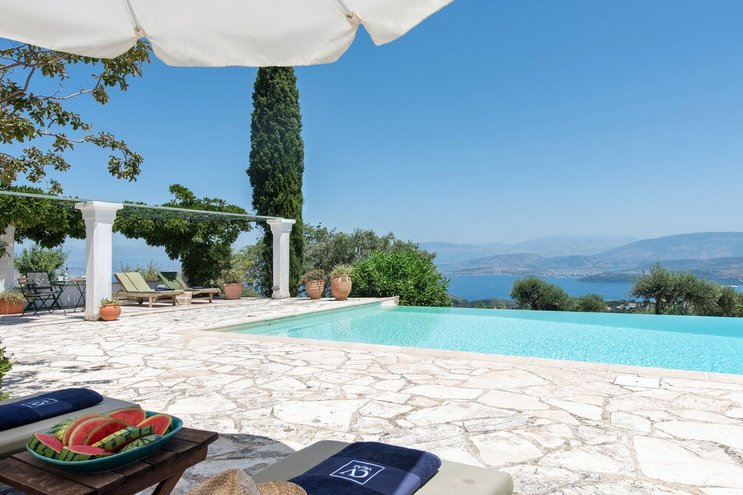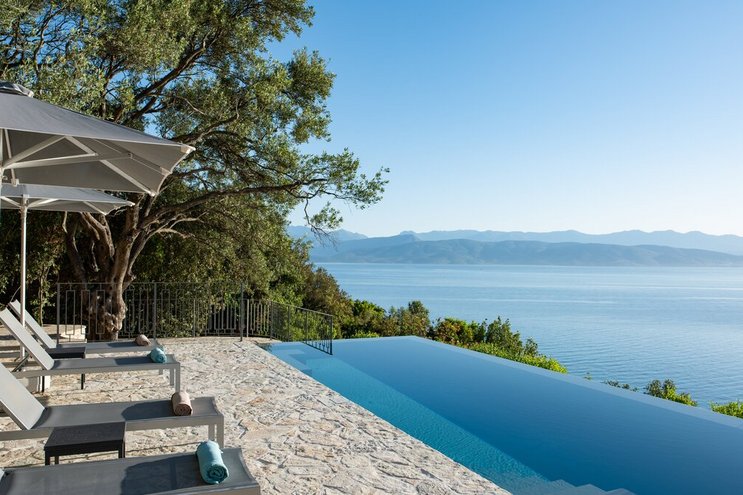 Villa Amavi ist ein stilvoller Rückzugsort mit drei Schlafzimmern auf Korfu, der Privatsphäre, Abgeschiedenheit und einen atemberaubenden 180-Grad-Blick über das Wasser in Richtung Albaniens Berge verspricht.