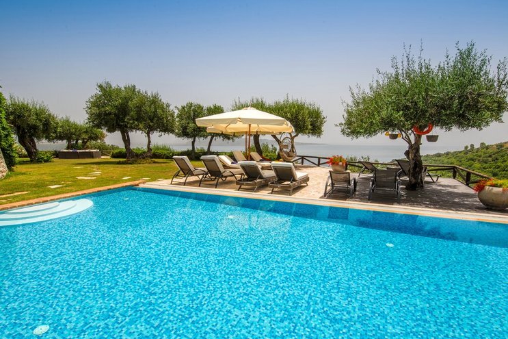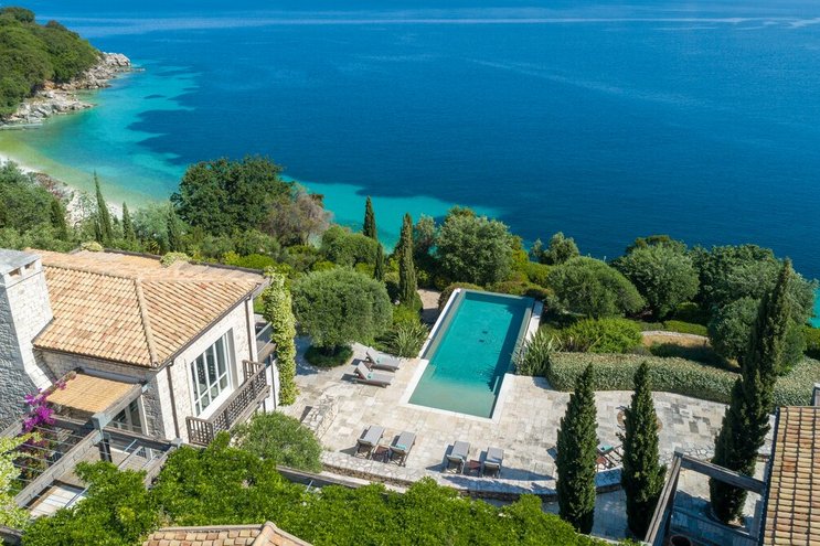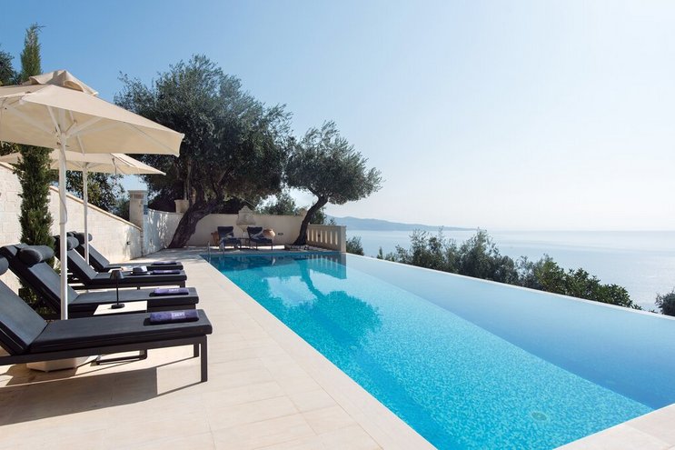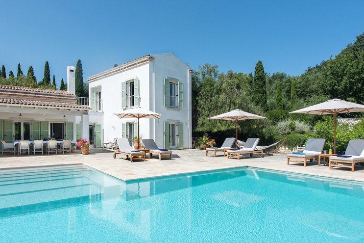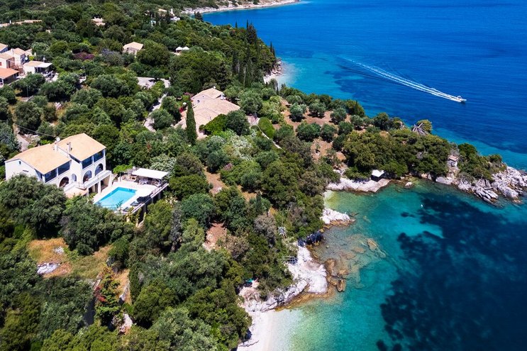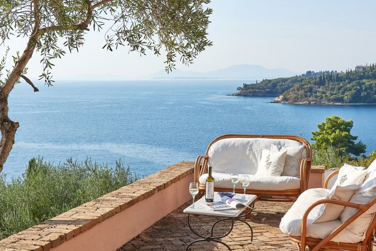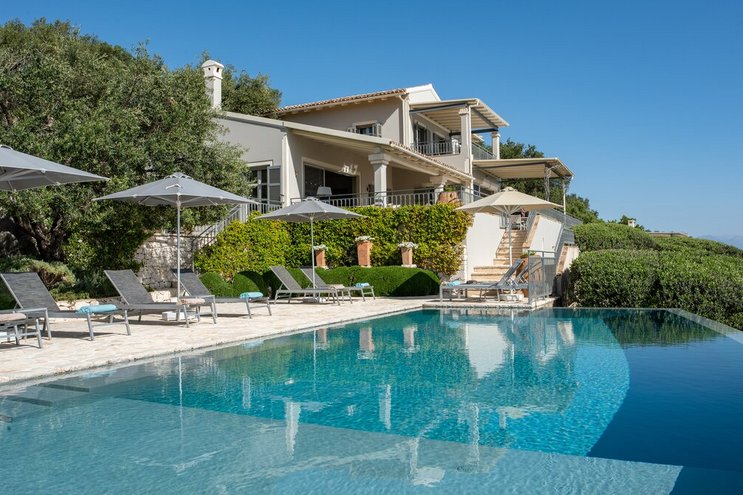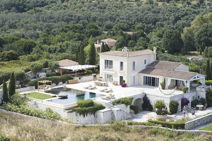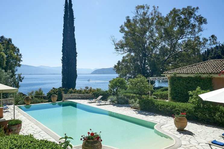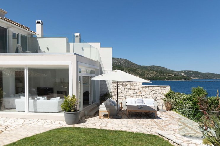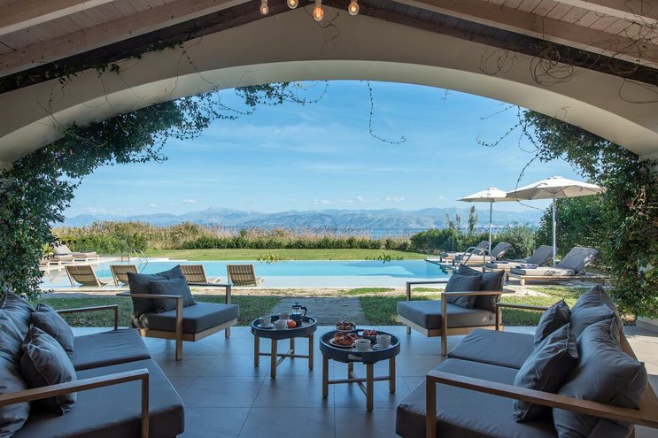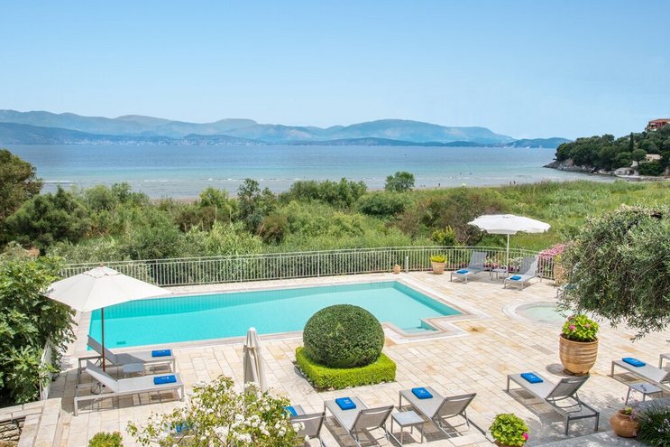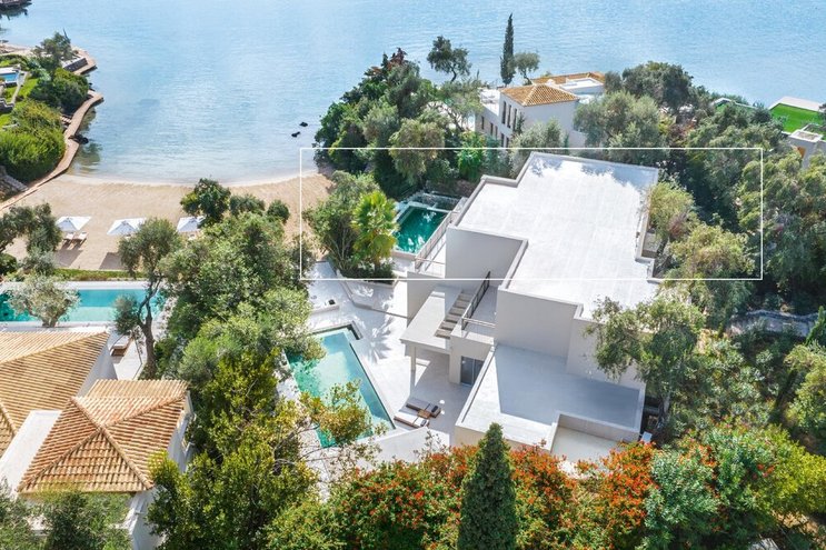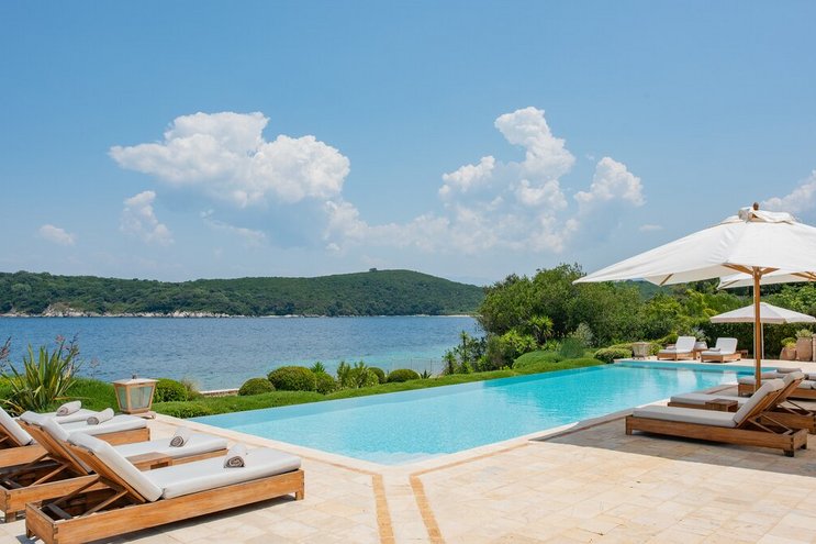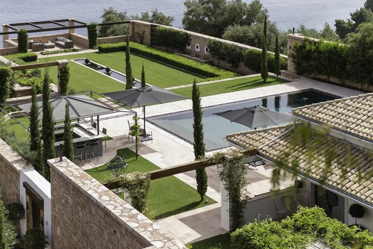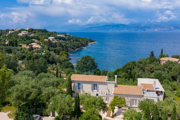 Set in gardens that hem the seafront, with glorious views and a jetty over the water, this luxury villa in Corfu is a contemporary classic, with a twist of tradition adding character and charm.