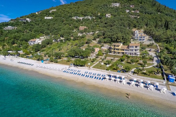 Mit einer Strandlage, die kaum zu übertreffen wäre, verfügt diese Familienvilla auf Korfu über ein Gartentor direkt an der Kieselküste von Kerasia und ist nur wenige Schritte vom Hafen von St. Stephano entfernt.