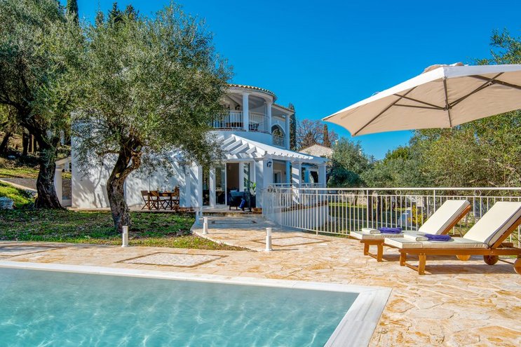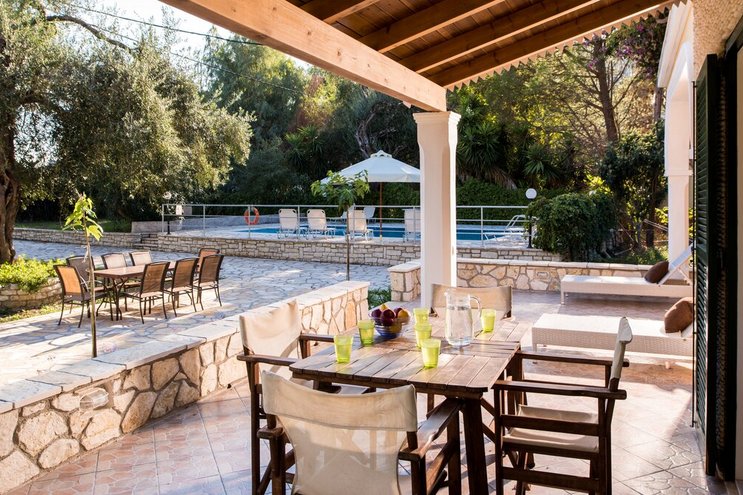 Umgeben von einem natürlichen Schatten versilberter Olivenbäume und mit Blick auf den Hafen von St. Stephano, nur einen kurzen Spaziergang entfernt, ist diese Familienvilla auf Korfu kühl, ruhig, komfortabel und praktisch.
