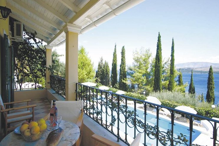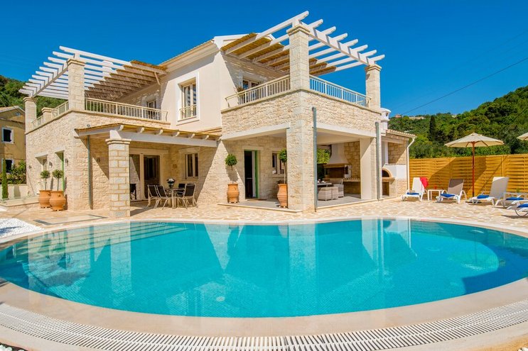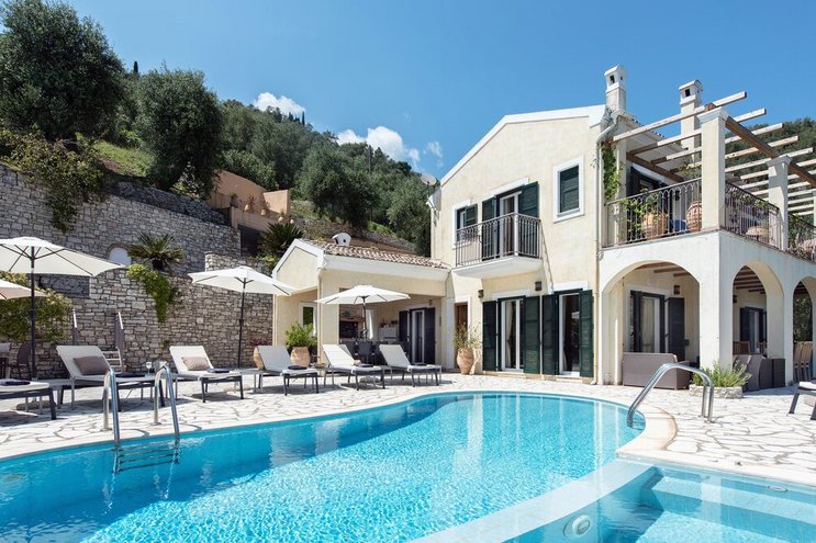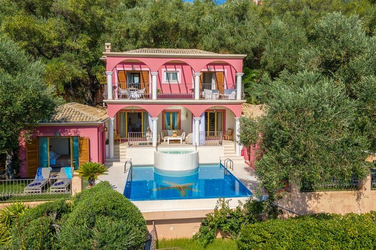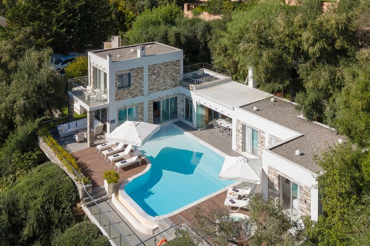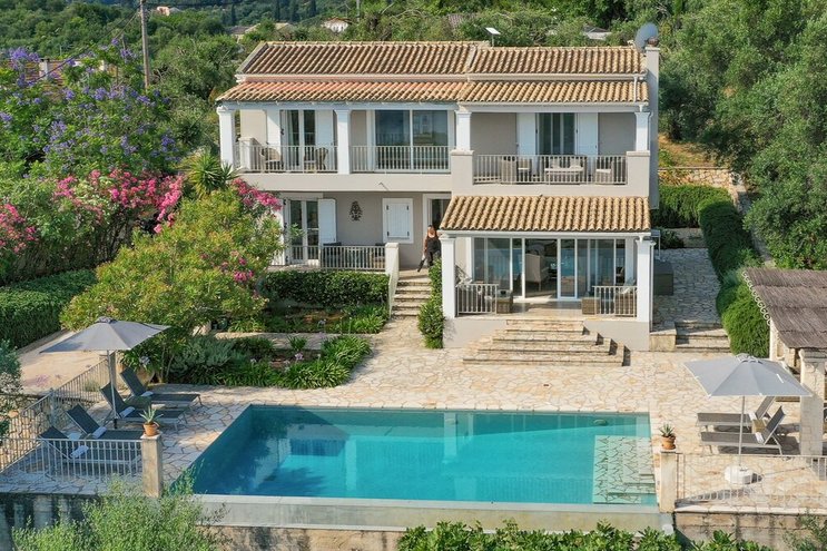 Als eines von fünf stilvollen Häusern, die sich ein privates und ruhiges Anwesen teilen, bietet diese Luxusvilla auf Korfu einen herrlichen Meerblick und einfachen Zugang zu einer Reihe von beliebten Resorts.