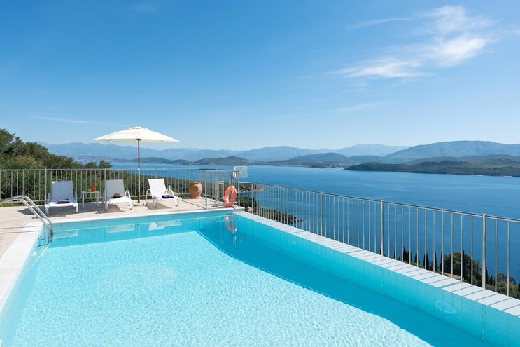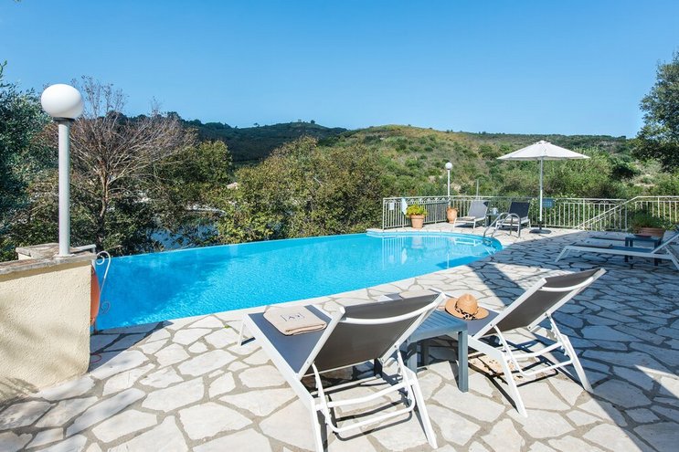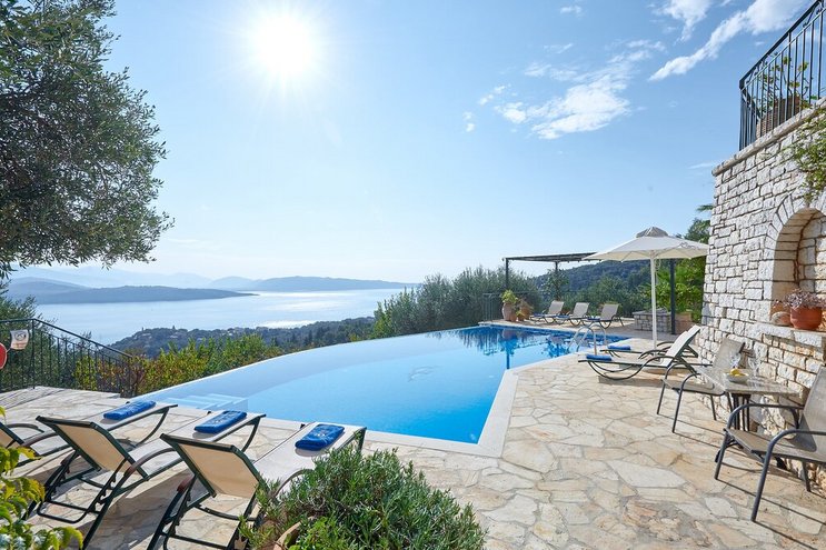 Diese familienfreundliche Villa auf Korfu mit atemberaubendem Blick vom großen Infinity-Pool befindet sich in einer idyllischen Umgebung für diejenigen, die dem Alltag entfliehen möchten.